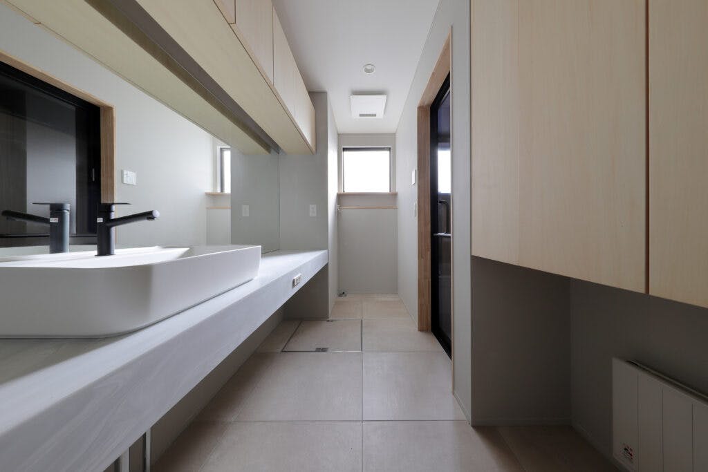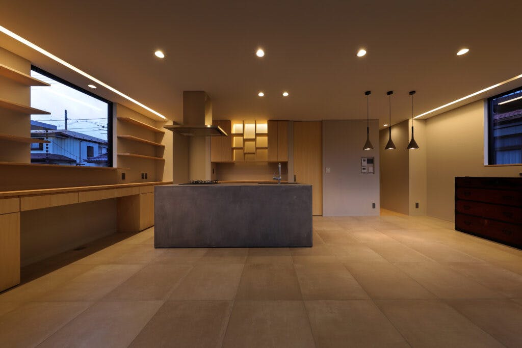モールテックスの色合いがおしゃれなで洗練された空間によく映えていますね。