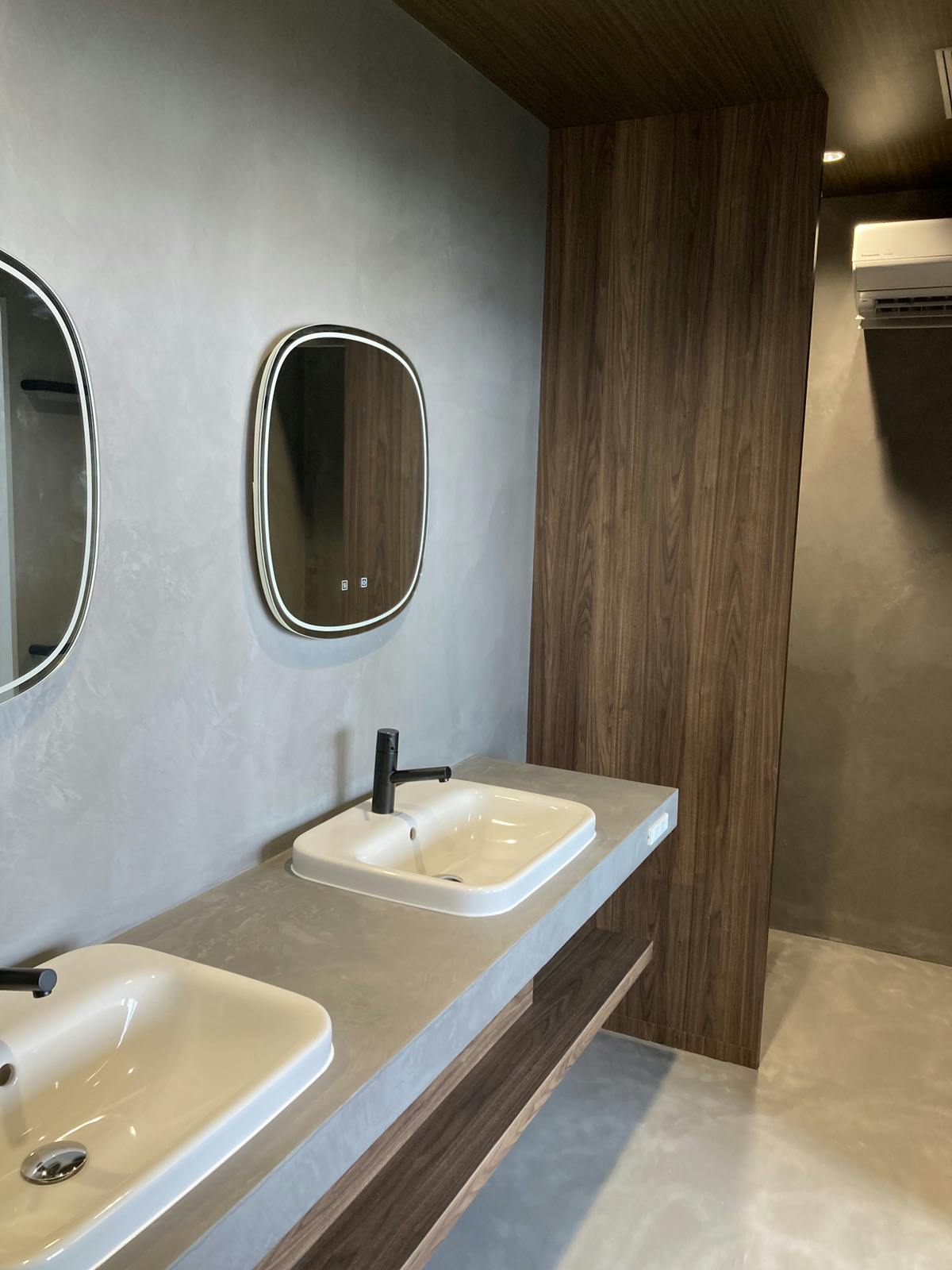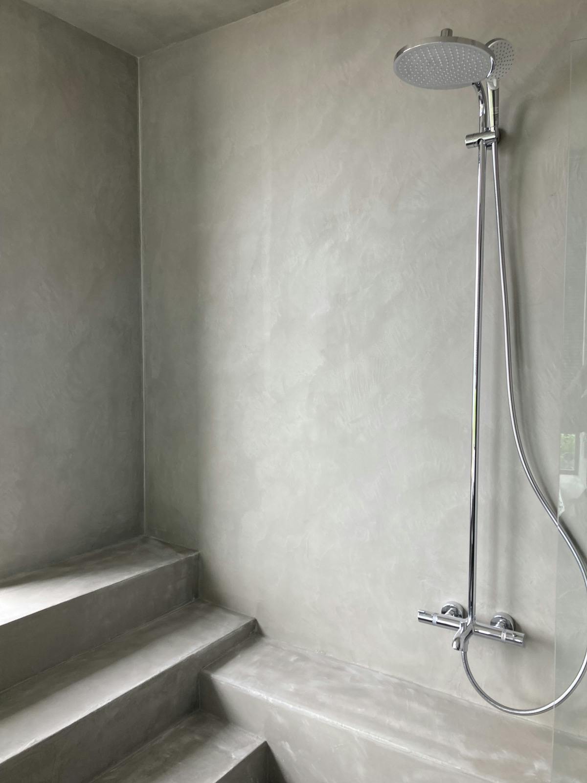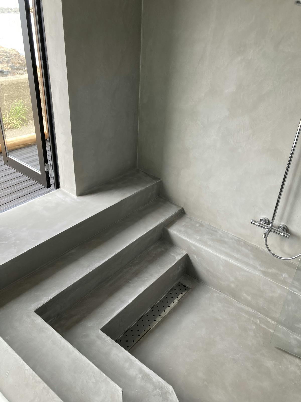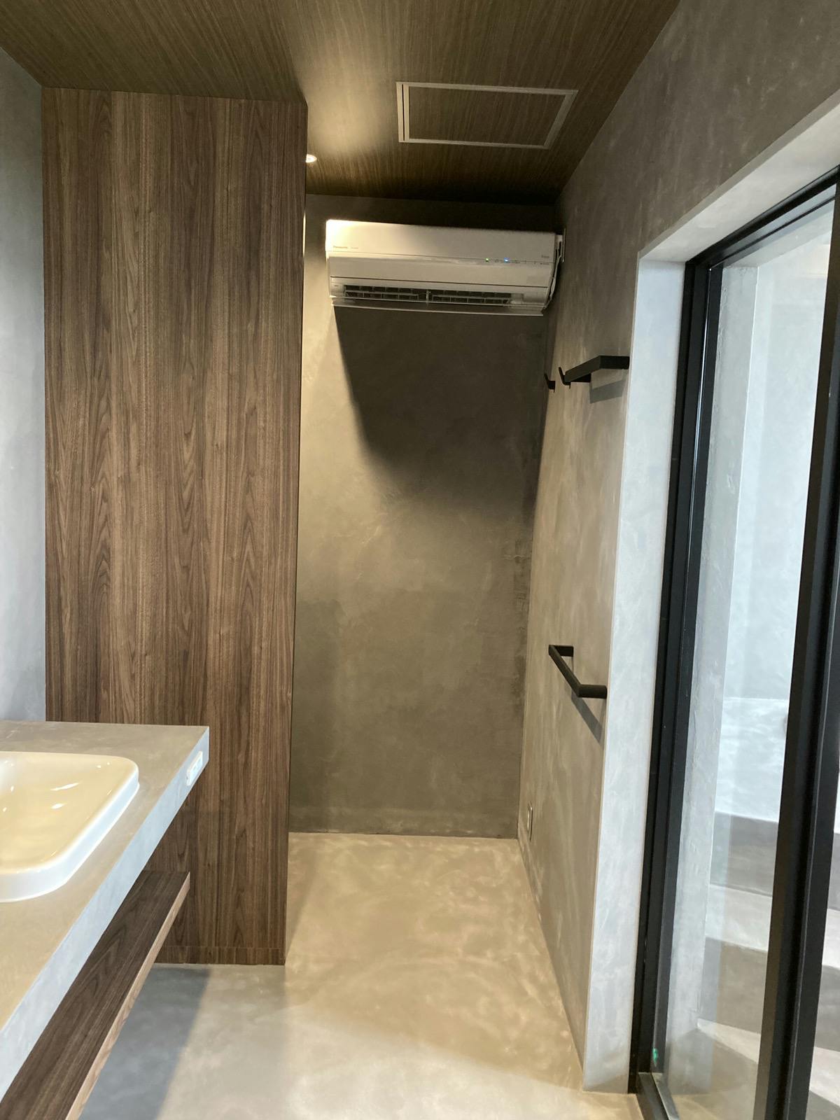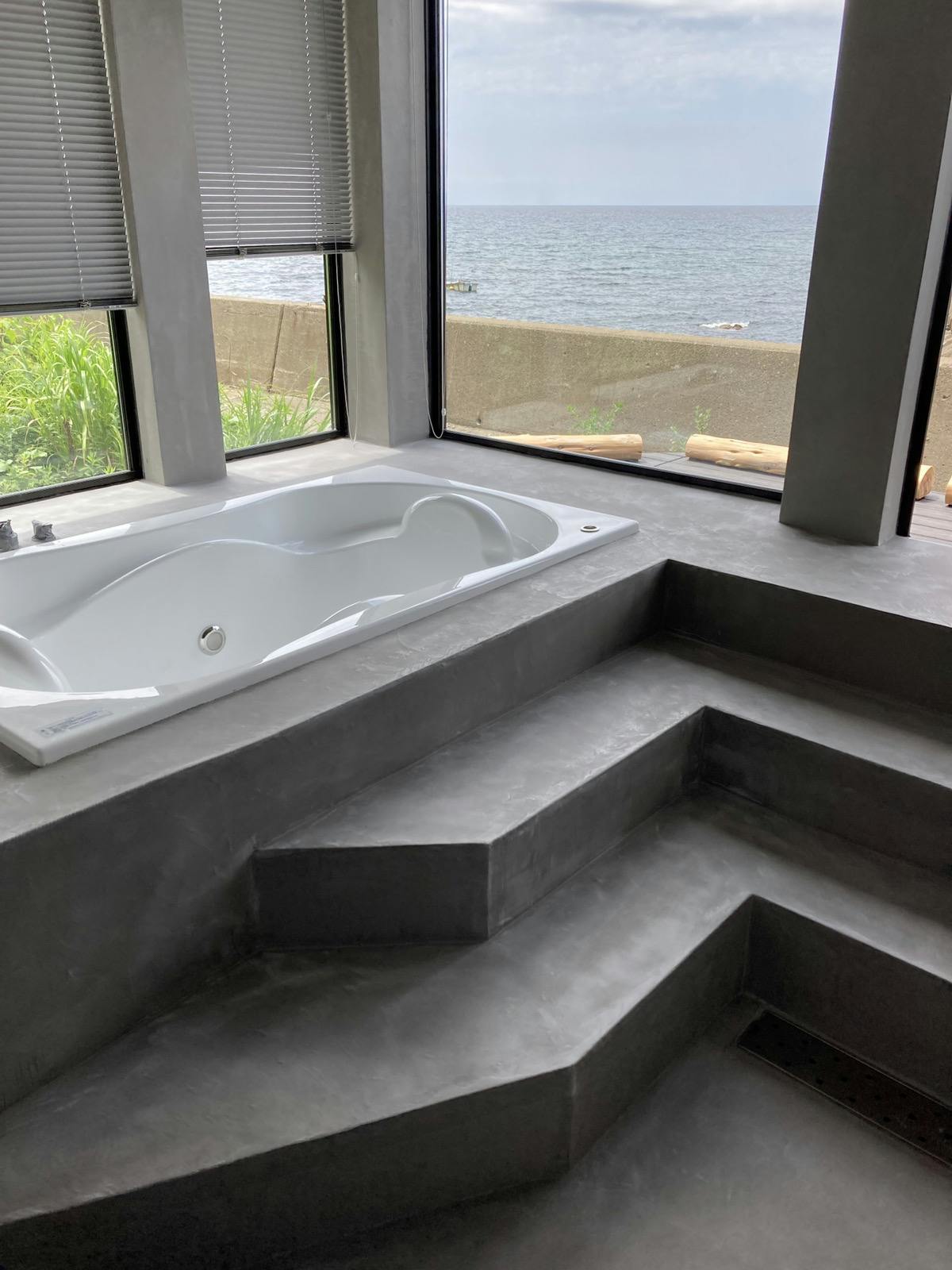 海の見える浴室全体をモールテックスで施工されています。