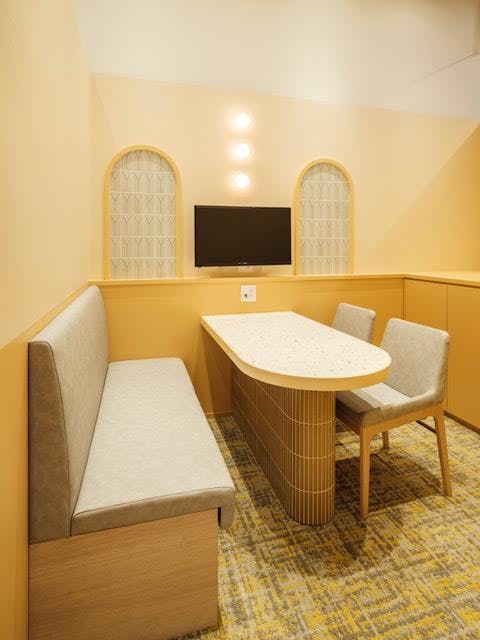 愛知県の店舗、打ち合わせスペースにて、テーブルをビールストーンで仕上げていただいた施工事例のご紹介です。