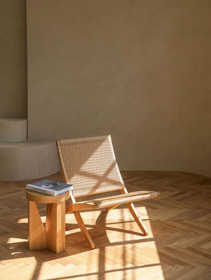 窓から差し込む光と影が、曲線美をさらに美しく見せ、空間のアクセントとしても存在感のある台が完成しました。