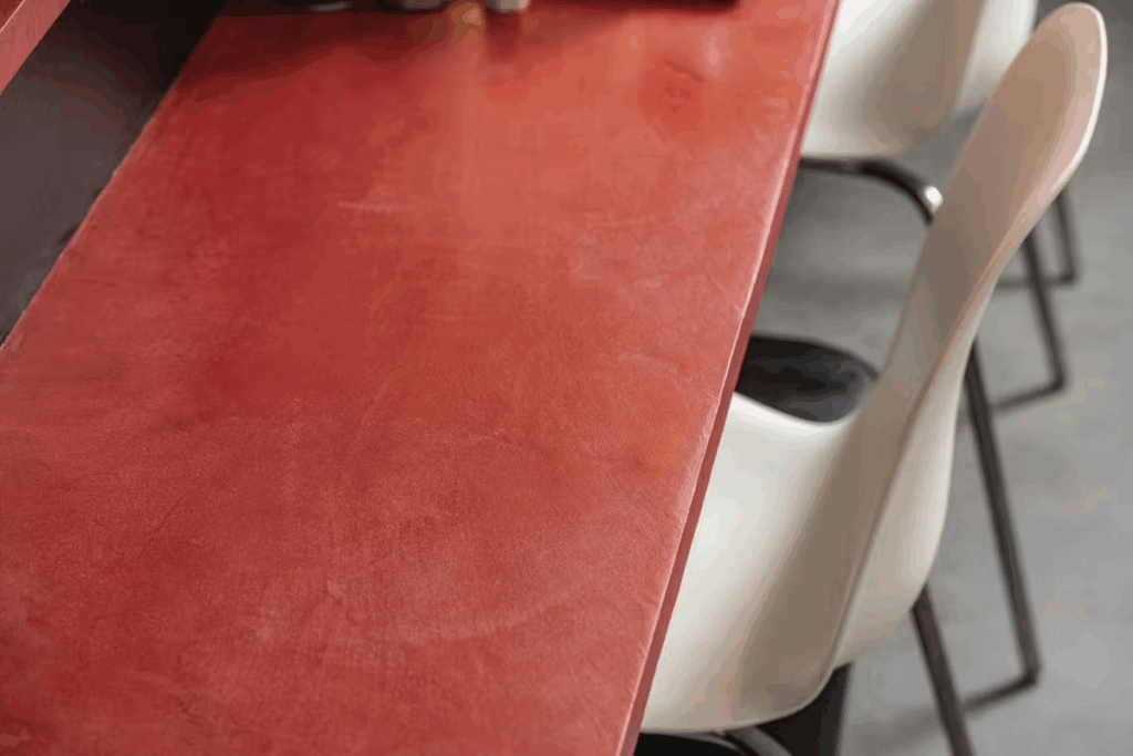 鮮やかな赤いテーブルが目を惹くモールテックス|宮城県 施工事例