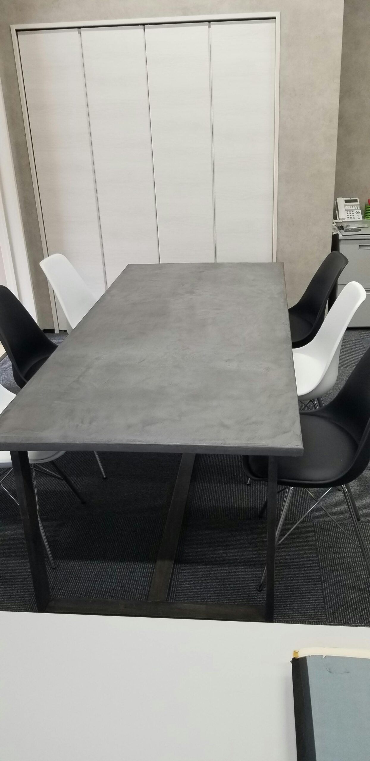 グレー系のモールテックスでテーブルを仕上げられました。このテーブル自体がオシャレですが、そのテーブルがある空間もオシャレになりますね