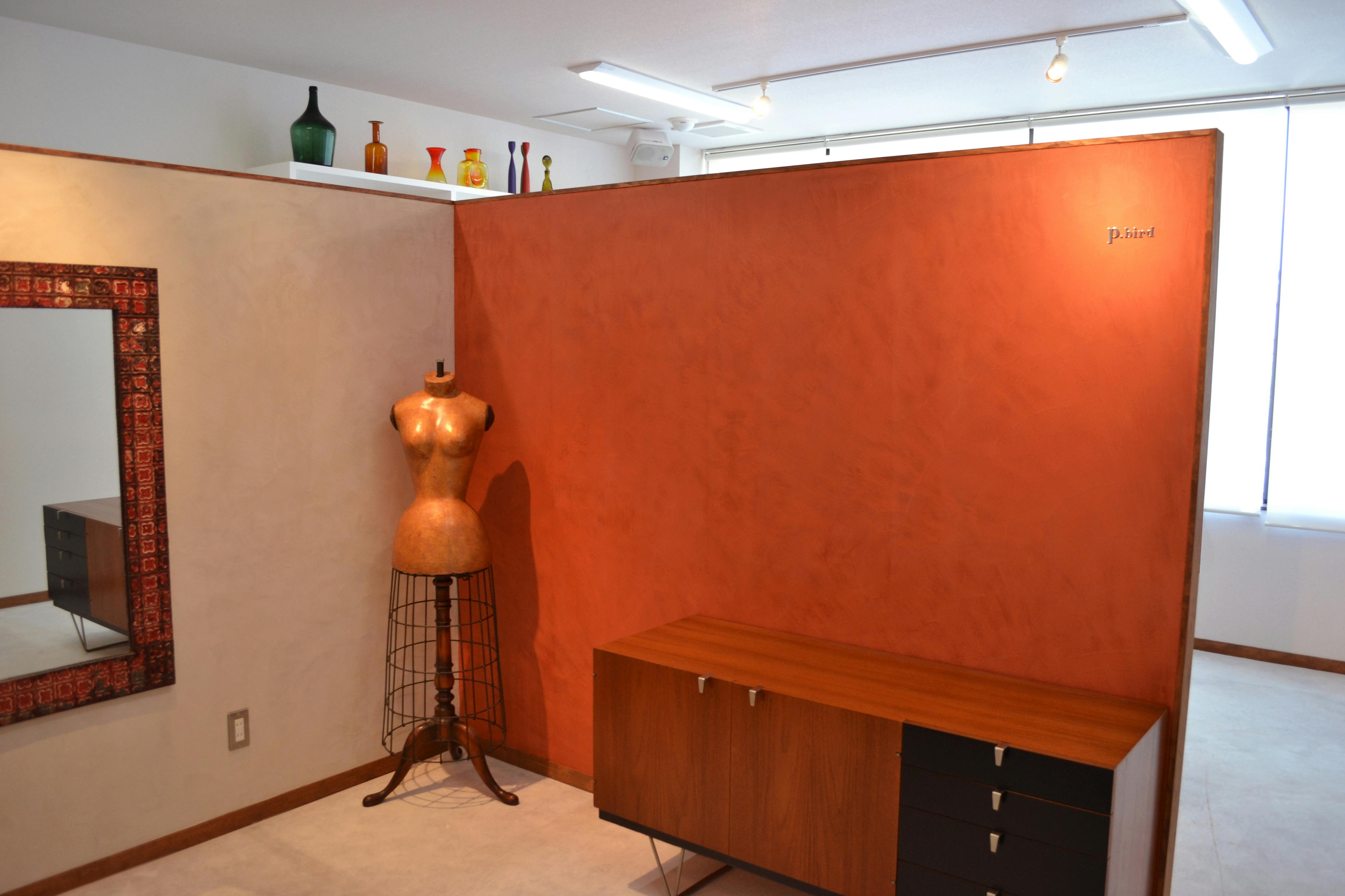 壁面にオレンジのモールテックスでビビッドさをプラス