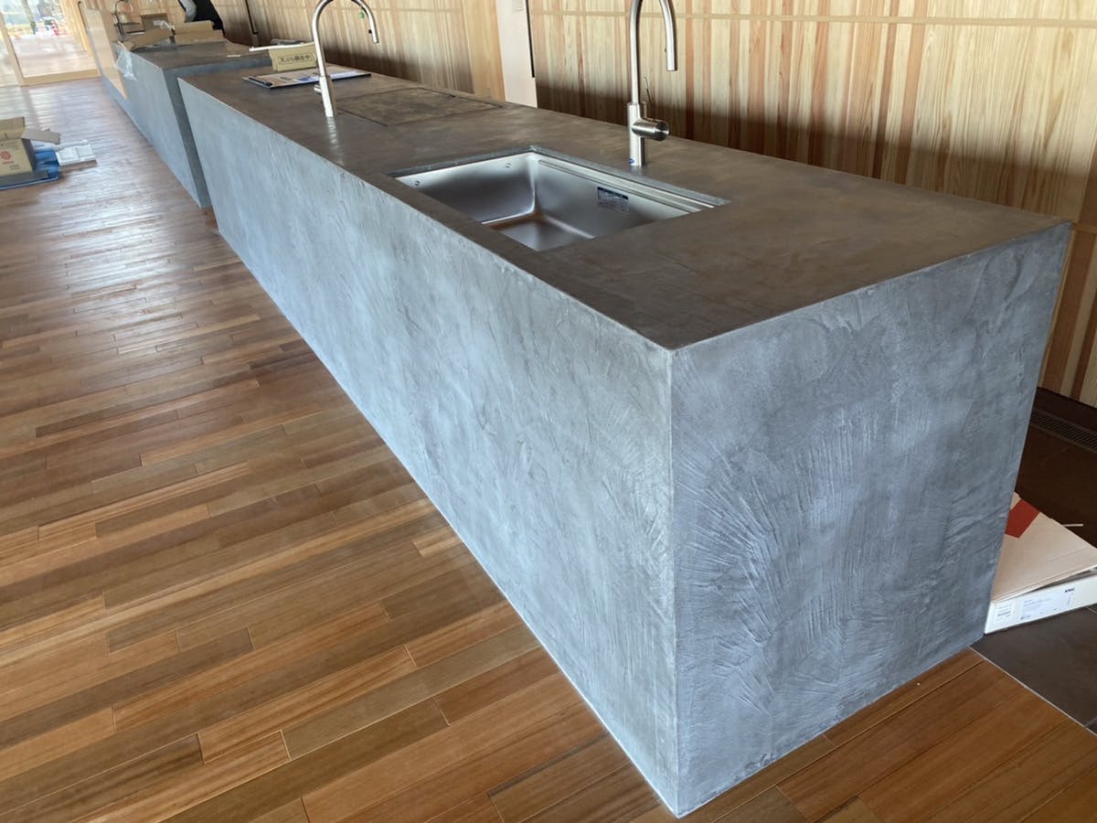 「モルタルのカウンターも使ったことがありますが、ヒビ割れとか結構メンテナンスが大変で。でもモールテックスだとそういうのがなくて済むからすごくいい。」