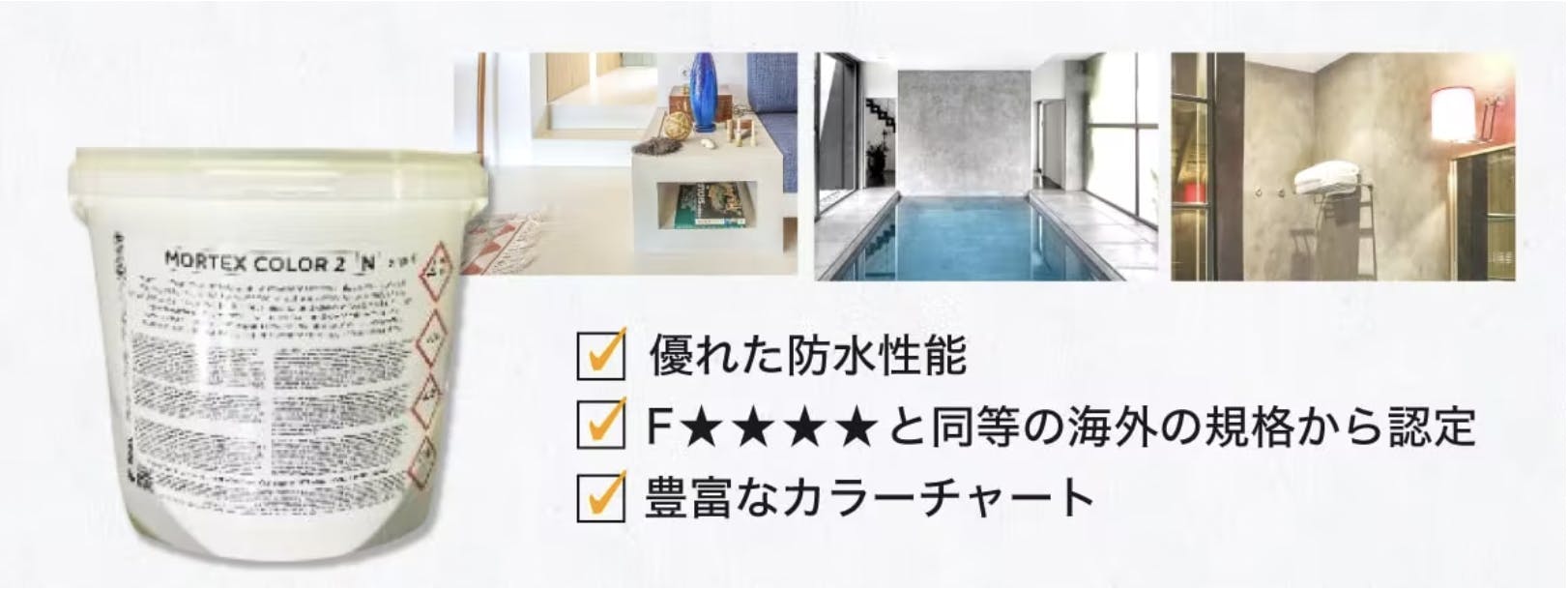 モールテックスは、ベルギーの会社が開発した塗り壁材です。耐久性や防水性、柔軟性など塗り壁材として最適な特性を持っているということで今注目を集めています。屋内の壁面や床に対応できるのはもちろん、外壁や外構での使用も可能とされています。