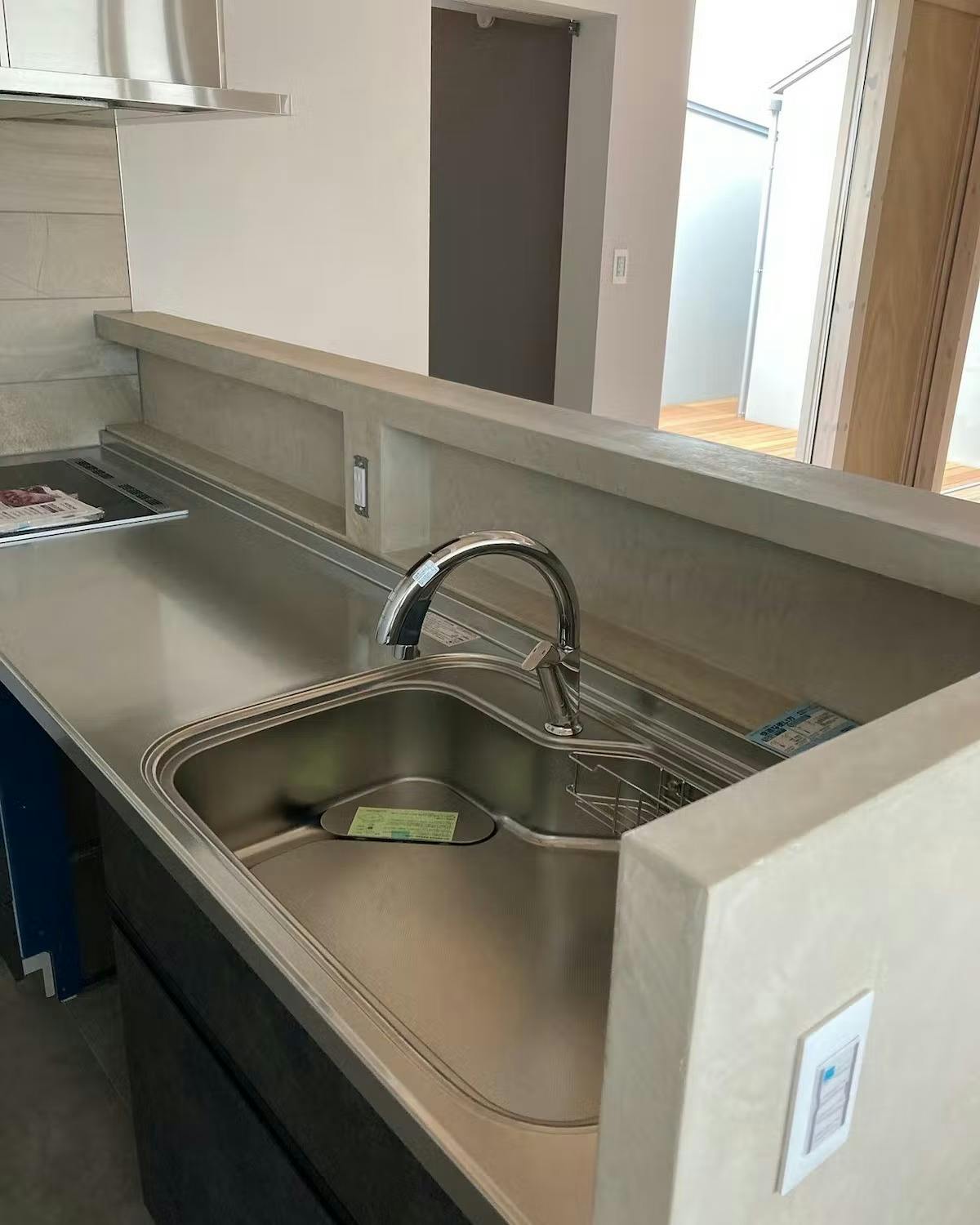 こちらのキッチンでは新色の【BM2035】を採用いただきました!人気のニュアンスカラーでおしゃれさが洗練されています。