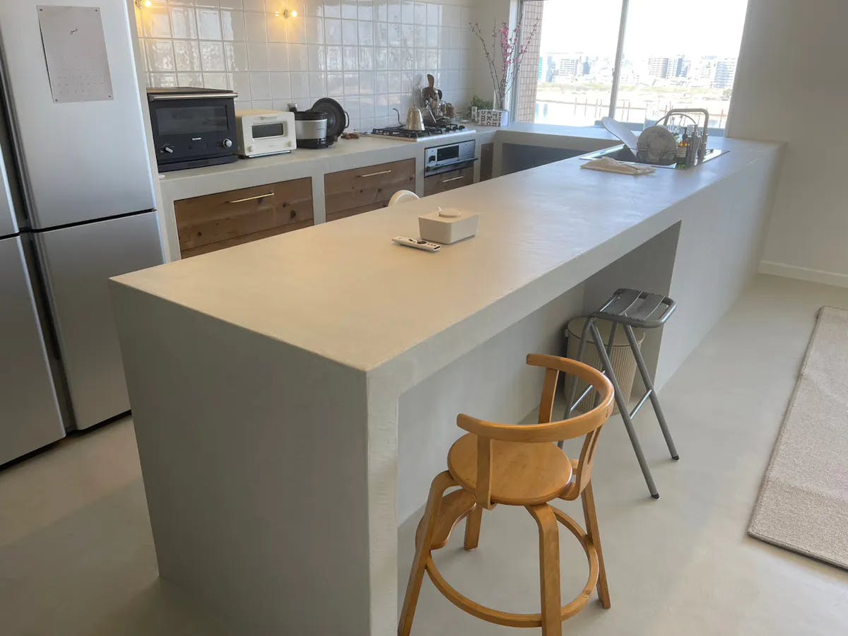 自由に色合いが選べて質感が良いことに加え、防水性や防汚性に優れたモールテックスを使うと、おしゃれで使いやすい台所をつくれるのでおすすめです。