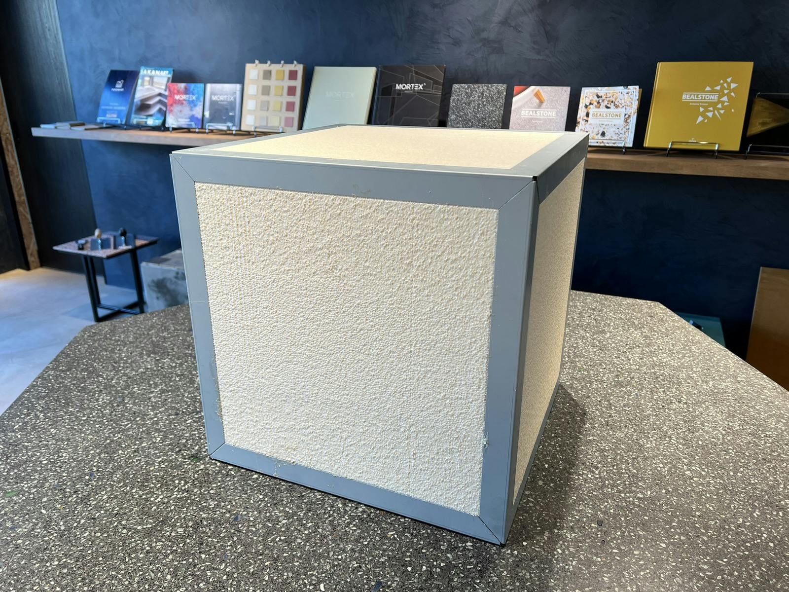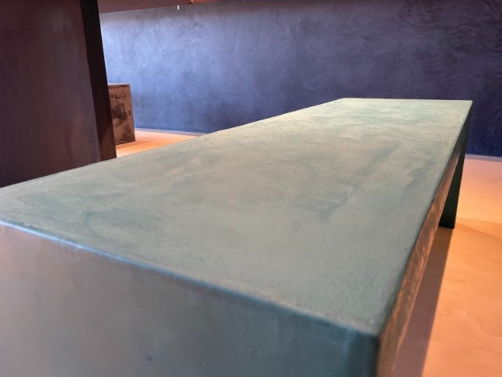 発泡スチロールの上にデザインコンクリートを塗って強度は十分に保てます。