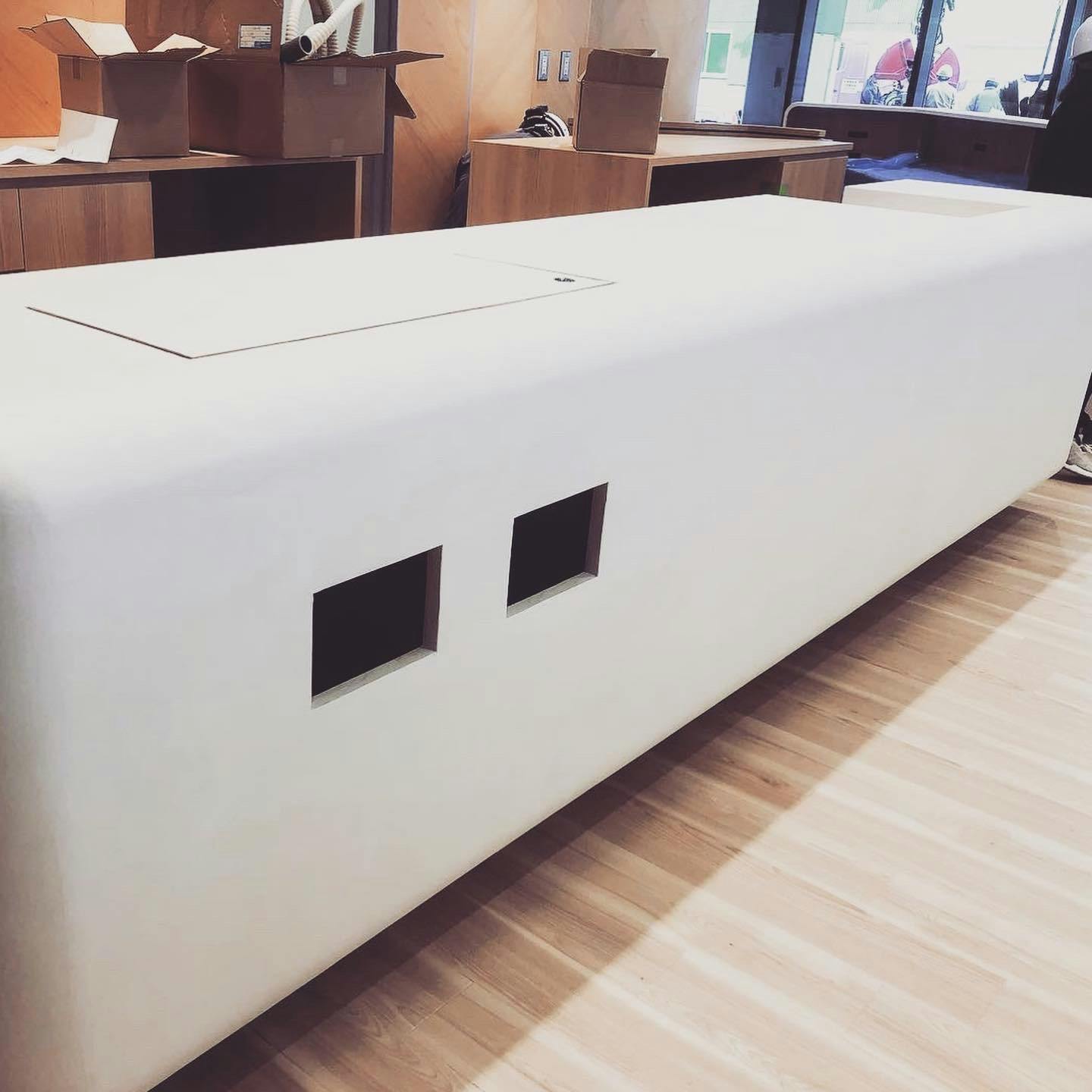 『面白い材料だなぁと思いました。壁・床・水回りに使えるモルタルしかも薄塗で強度がある、キッチンや家具にも使えるなんてすごいなぁと』