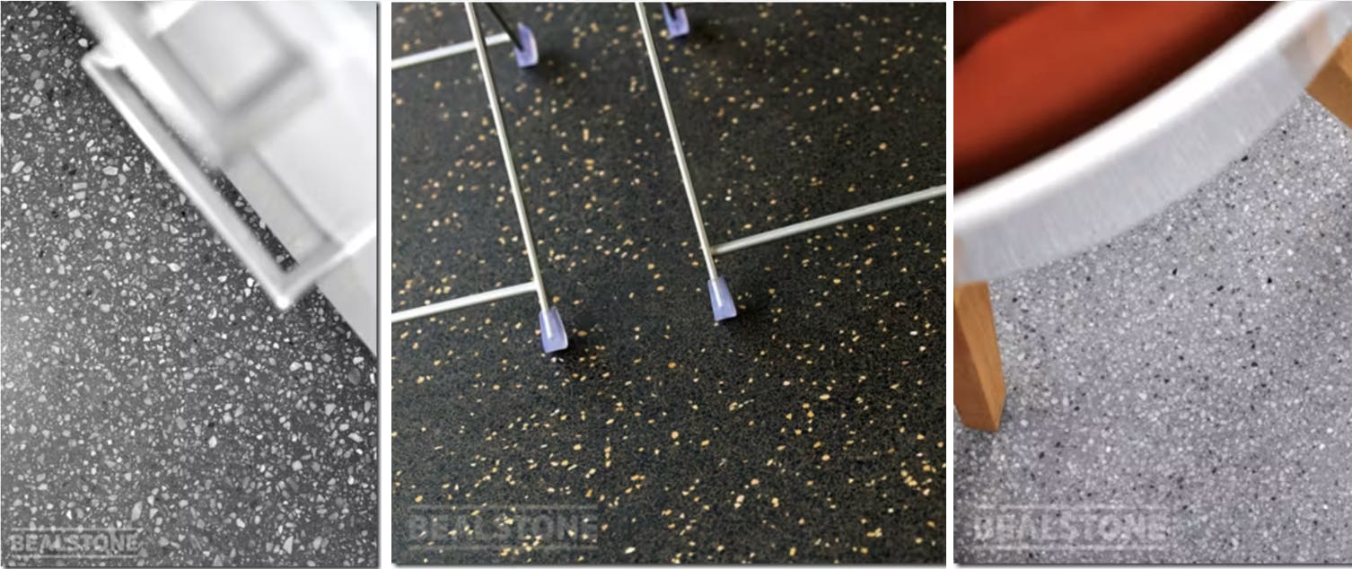 ビールストーンの、耐久性が高いという性質は、薄い施工ができるという強みに繋がっています。床材として用いる場合、デザイン上の問題がなければ、10mm程度の厚みで施工できる場合も珍しくありません。そのため、床のリフォームを行う際に、既存の床材を取り除かないまま、上からビールストーンを敷くという施工も実現可能です。床面が10mm程度高くなった程度では、生活スペースが大きく圧迫されたり、違和感を感じたりすることはまずありません。