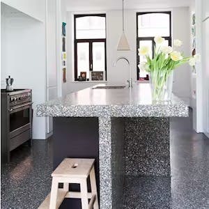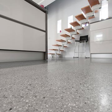 仕上がりの外観は、従来の「テラゾ」や「研ぎ出し」を連想させ、モダン、レトロの風合いを問わず周囲のデザイン環境とよく調和します。