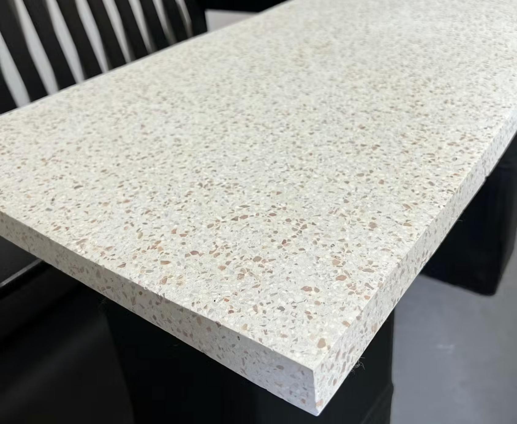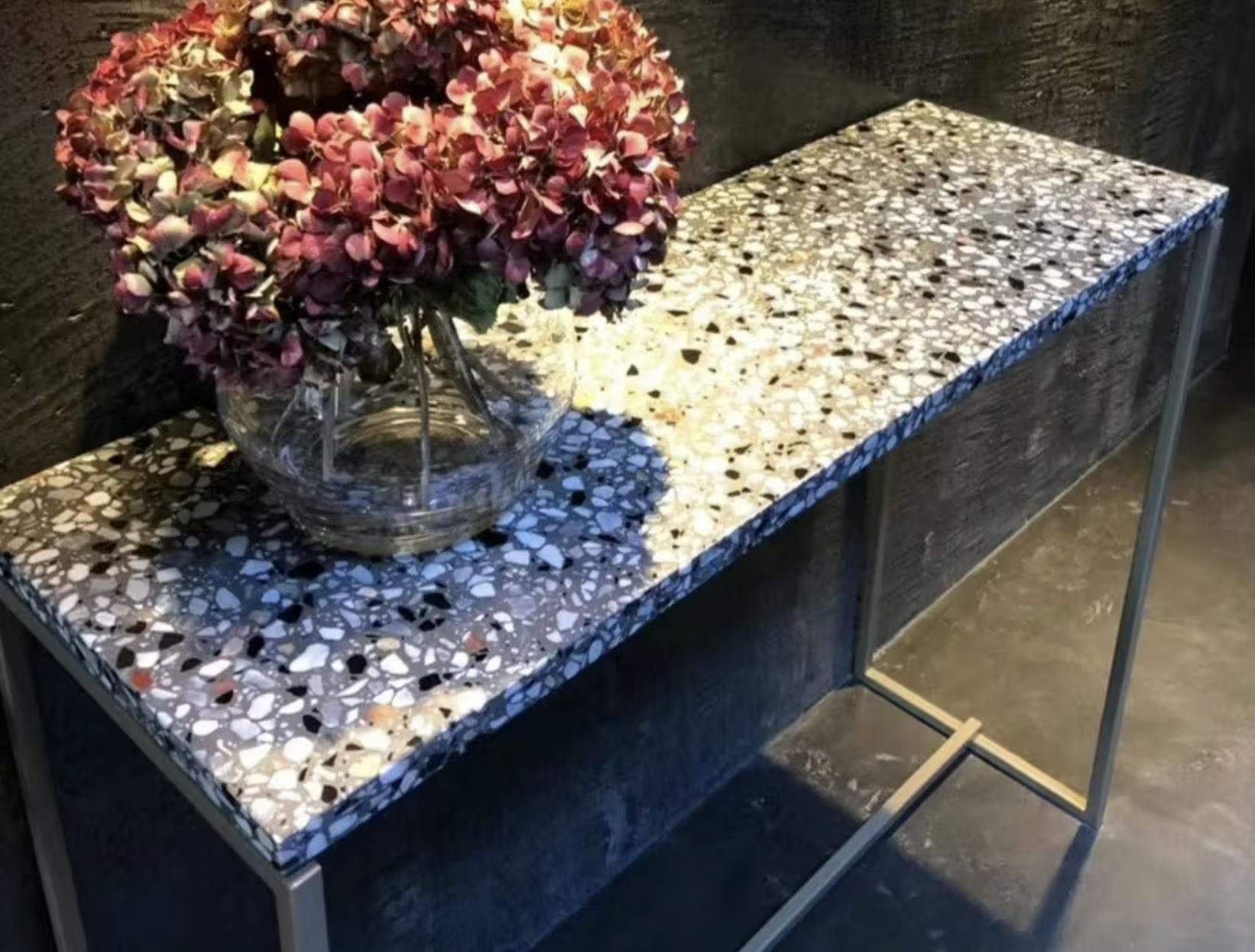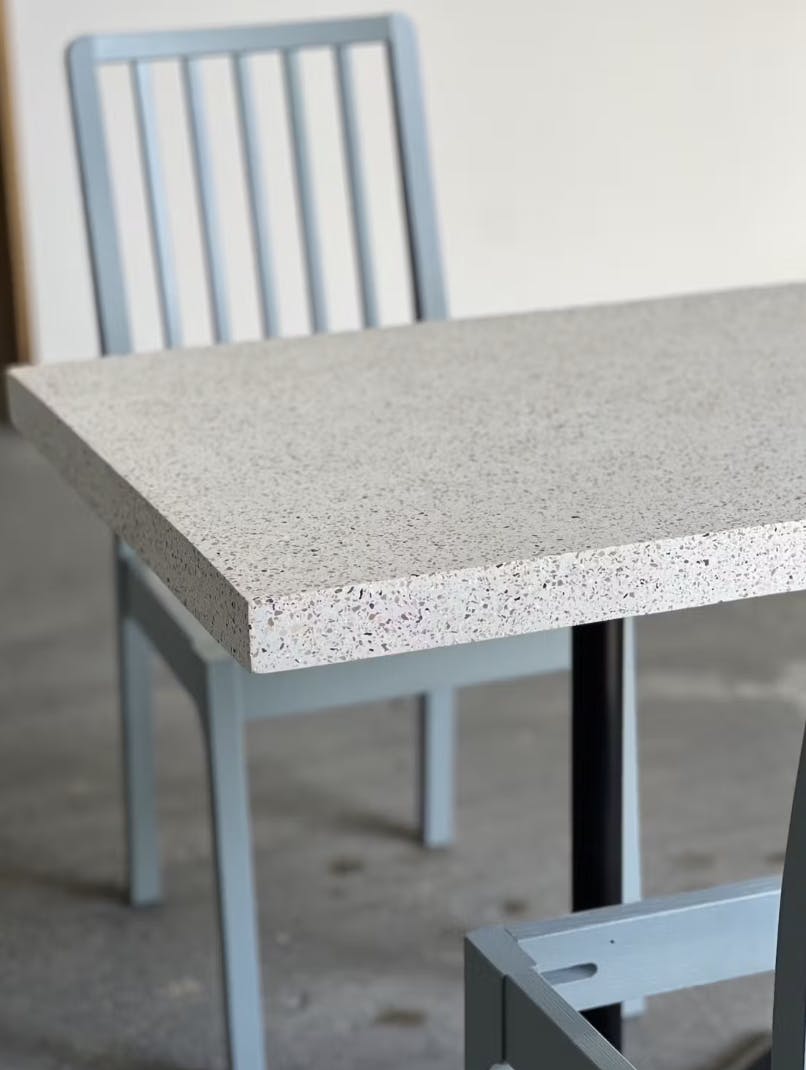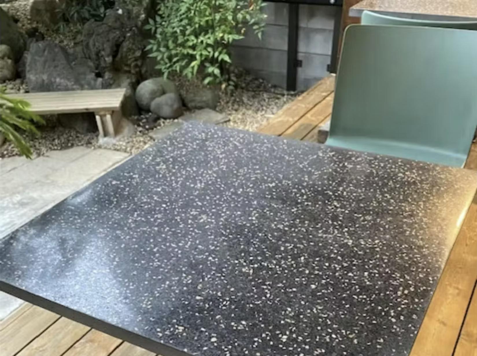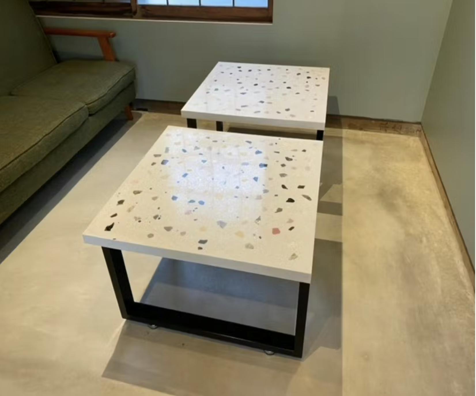 ビールストーンで作られたテーブルは、丈夫でシームレスな仕上げができる良さがあります。