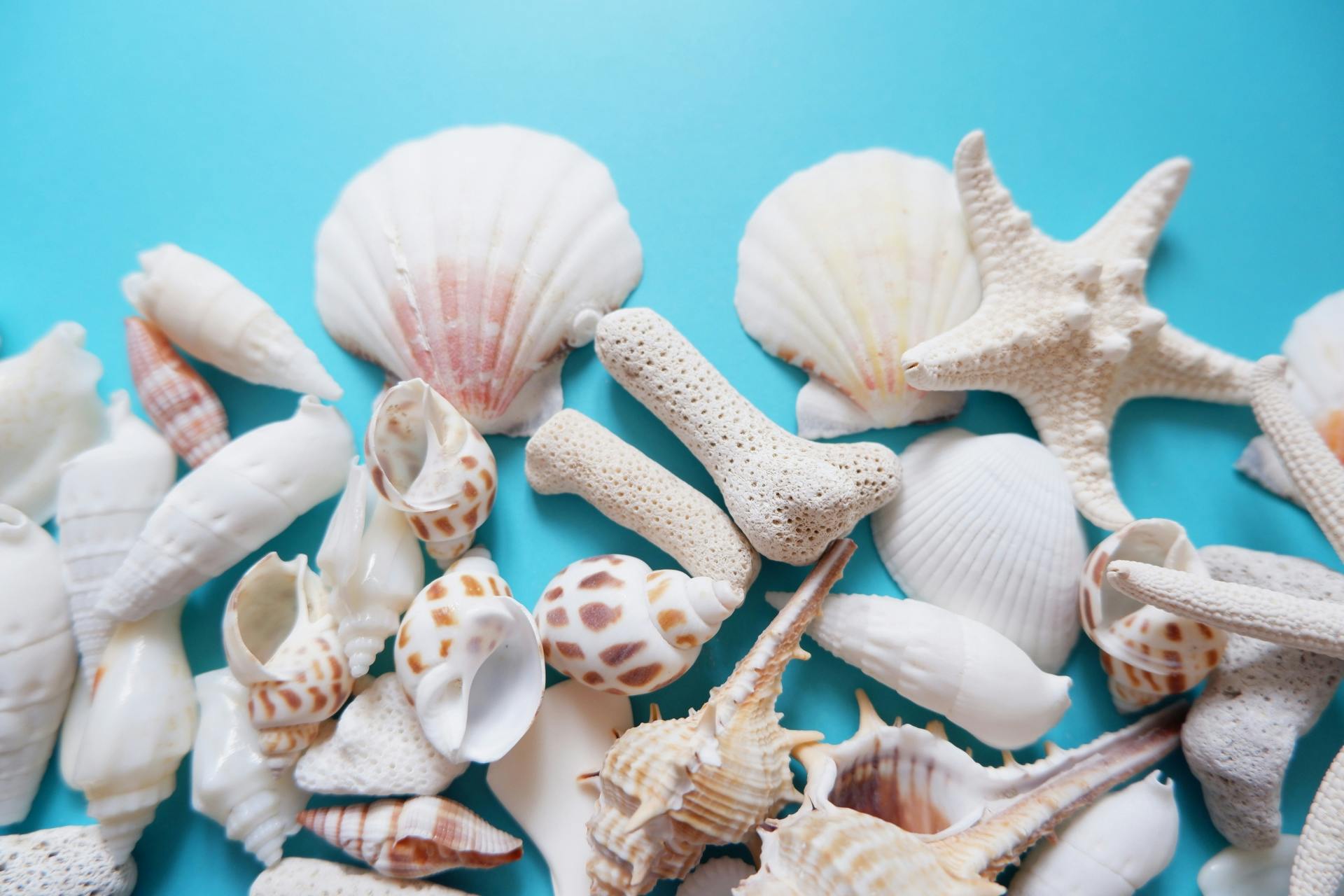 貝やサンゴは種類によって色味や模様が千差万別です。