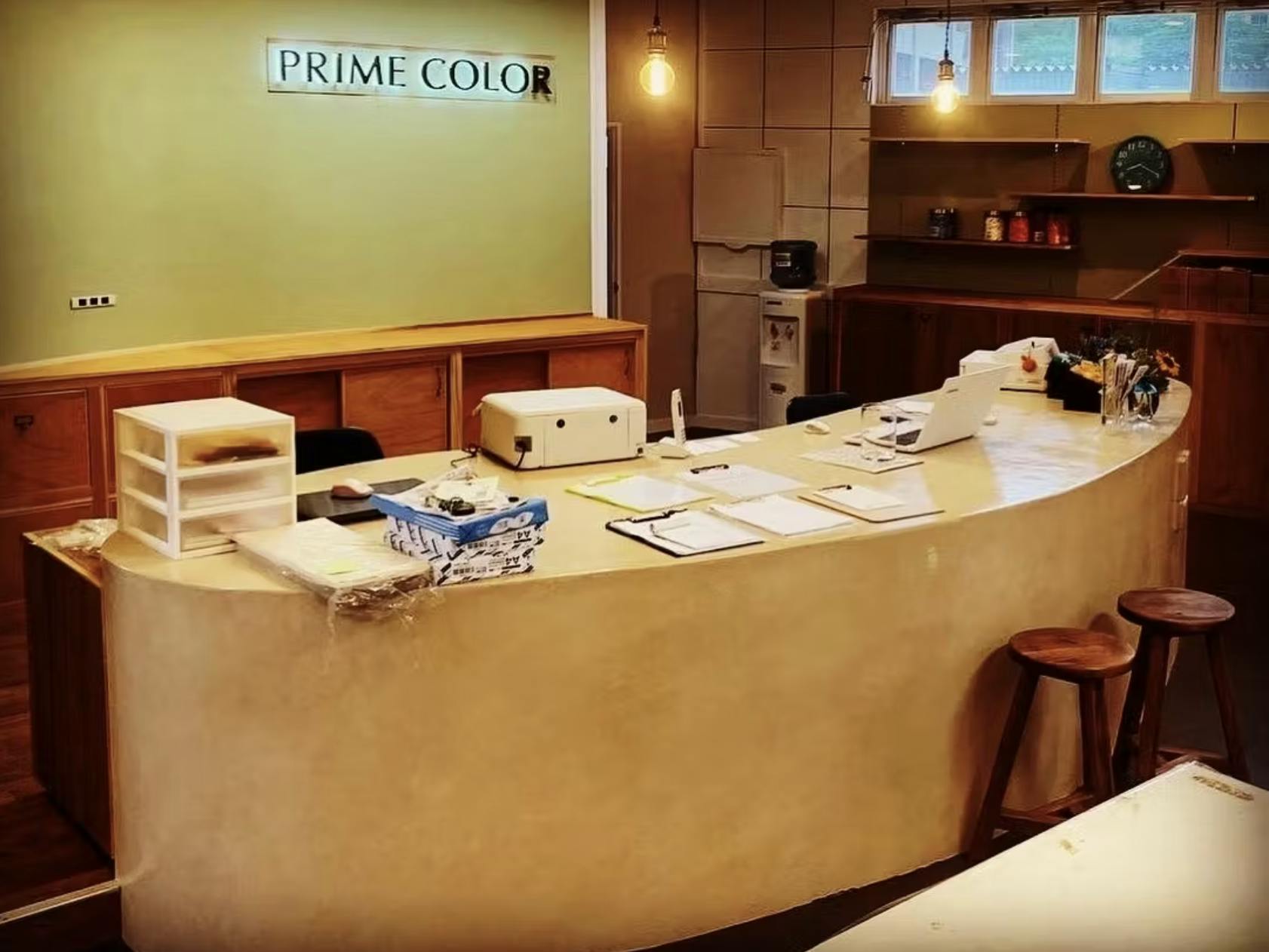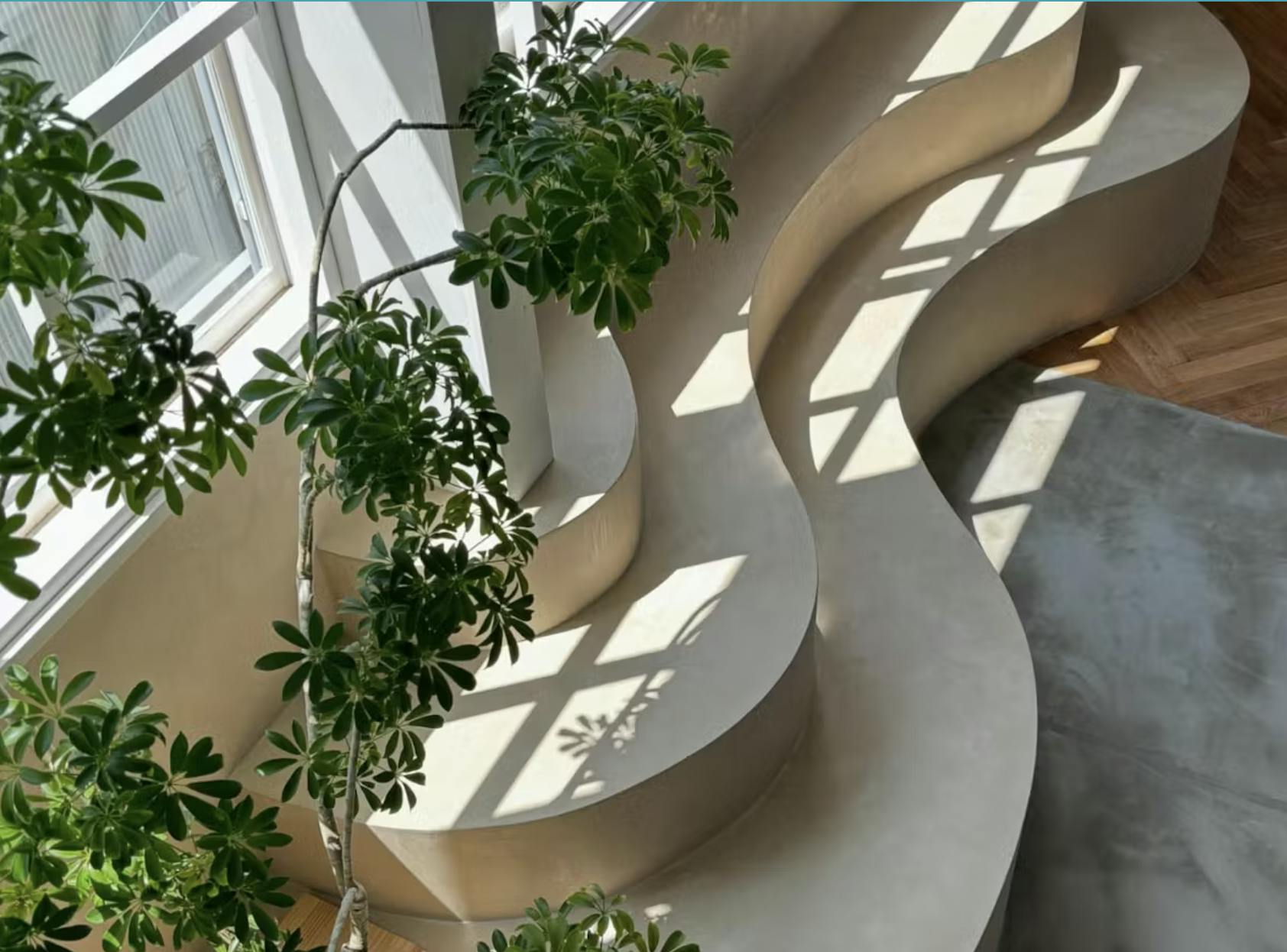 モールテックス最大の魅力は、そのデザイン性の高さです。コンクリート風の無機質でスタイリッシュな質感を持ちながら、色や仕上げにこだわることで、どんな空間にもマッチするデザインを実現できます。シームレスに仕上げられるため、壁や床、カウンターなどを一体化させ、統一感のある空間デザインが可能です。また、曲線や複雑な形状にも施工できる柔軟性があり、家具や店舗什器にも使われることが増えています。
