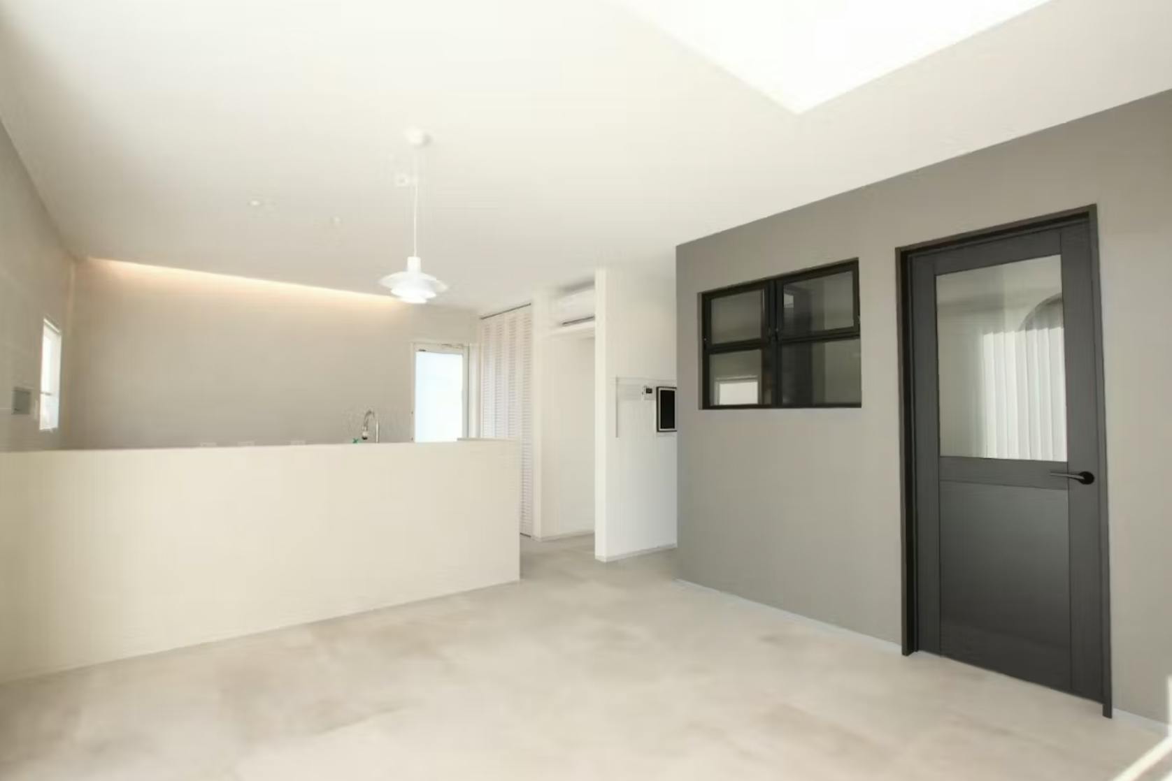 この事例では、モールテックスの ニュアンスカラー(BM2035)を採用し、空間に溶け込むようなやわらかいグレー系の色味が特徴的。