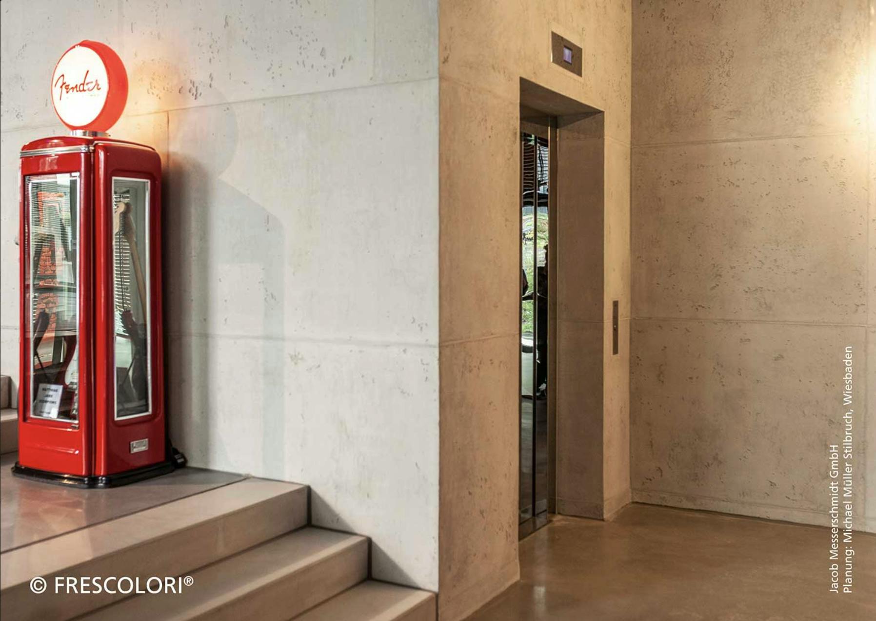 フレスカラリは、ドイツ製の左官仕上げ材で、日本ではまだ希少な輸入建材です。その最大の特長は、「まるで本物の打ちっぱなしコンクリートのような質感と風合いを再現できる」点にあります。