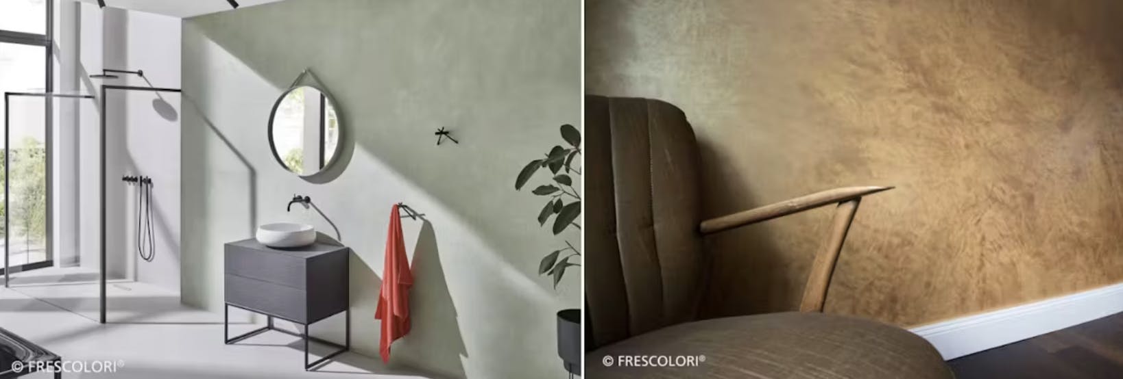 壁面にフレスカラリを用いたこちらの事例では、木材との組み合わせによって“温かみ”と“洗練”が絶妙に調和した空間が実現されています。
