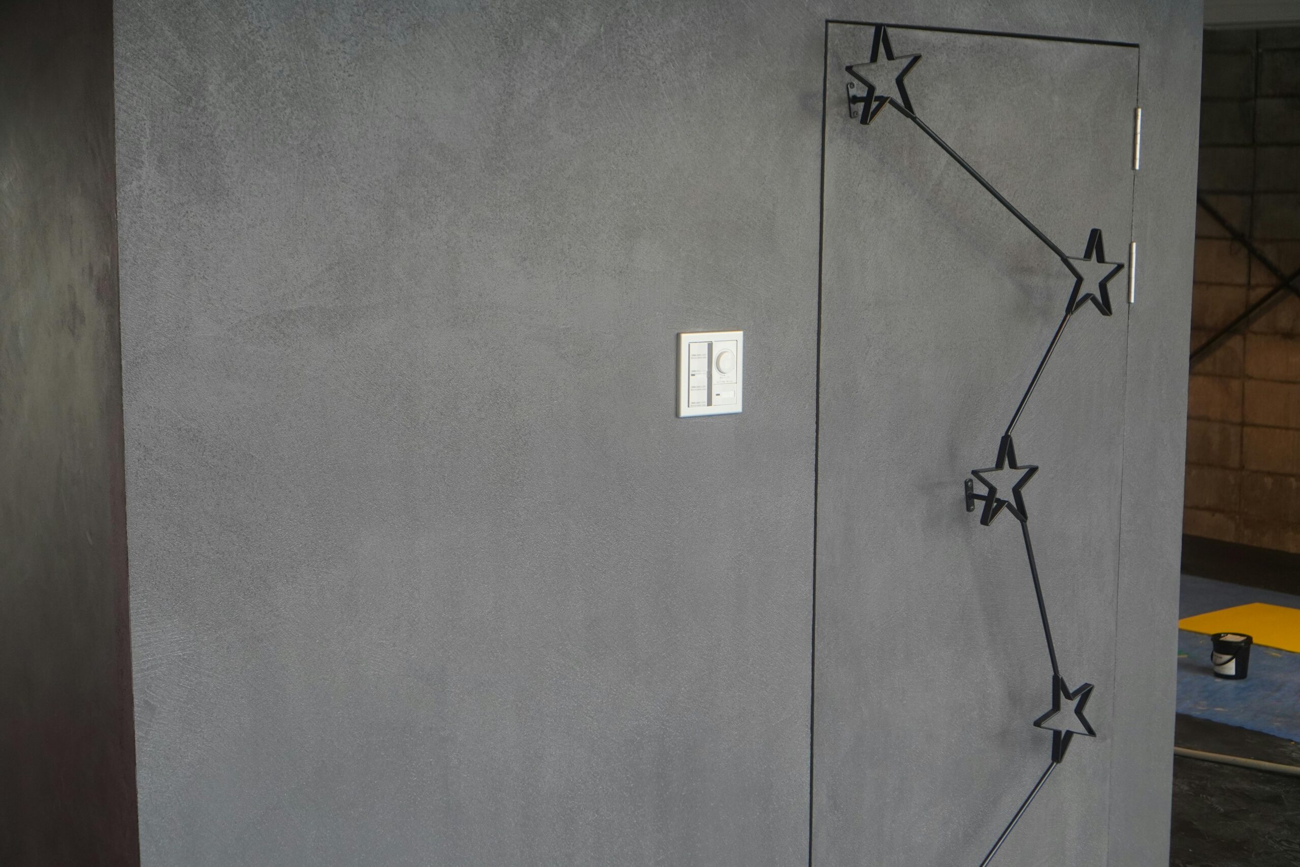 そんなフレスカラリは濃色含めた無限のカラーバリエーションで多様な表情を出すことができ、壁のみならず、天井・床・什器への高耐久・高い防水性能を求める箇所への施工も可能となっております!