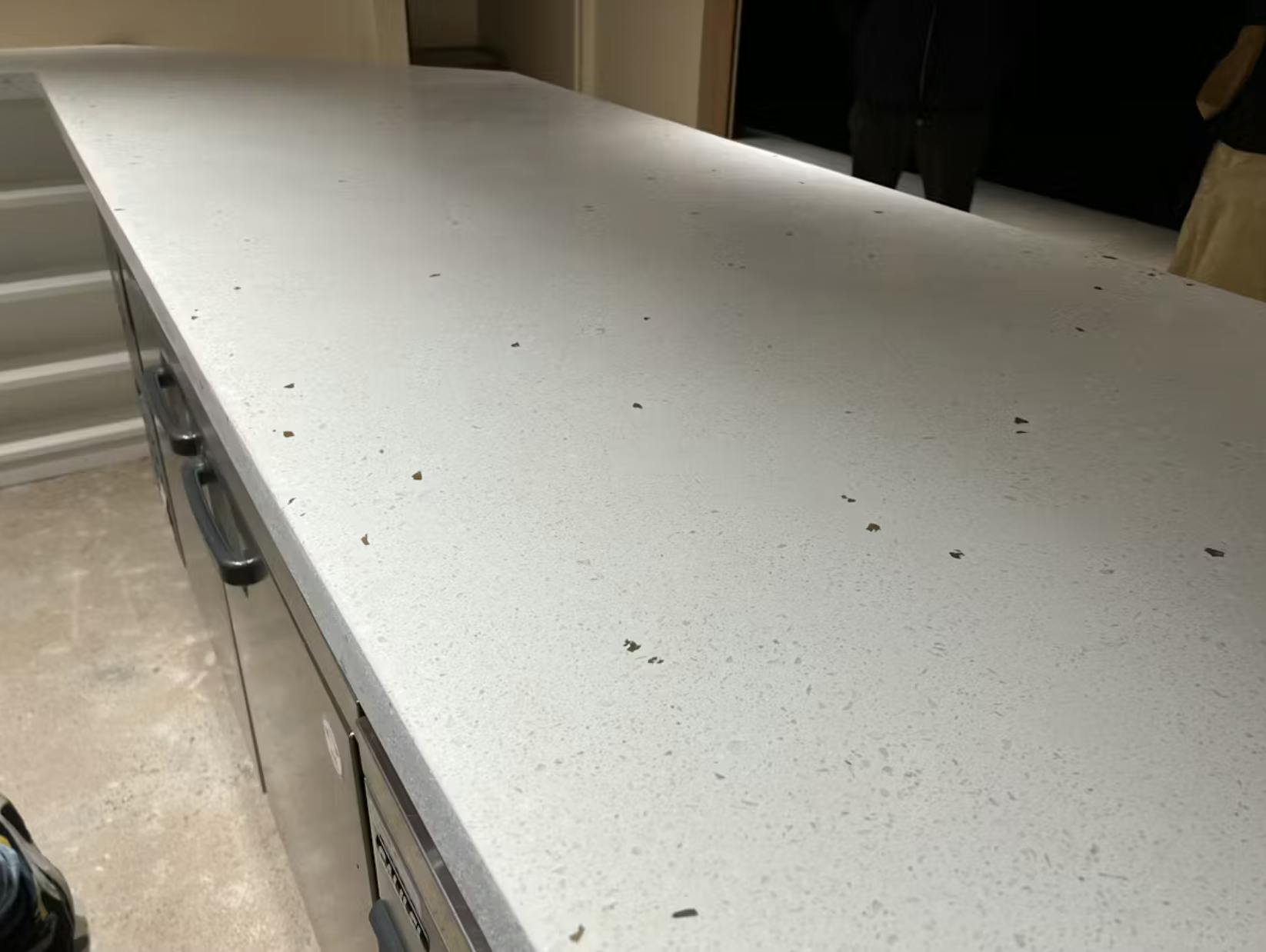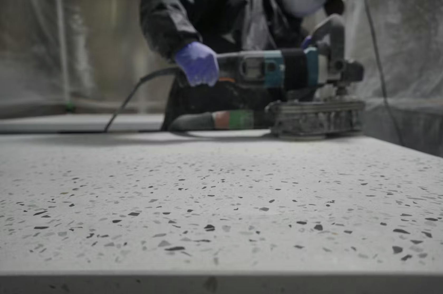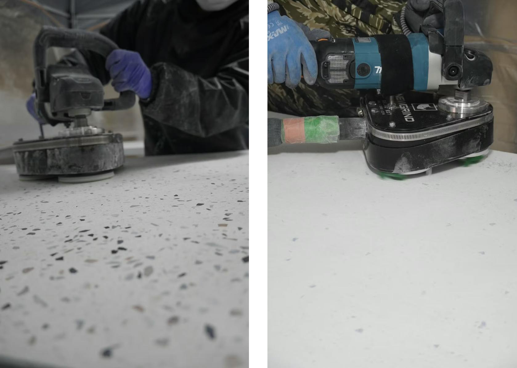 ビールストーンは、砕いた天然石や金属片、ガラスなどの骨材を独自の配合で組み合わせ、研磨して仕上げることで、まさに唯一無二の空間演出が可能になる素材。高級感がありつつ、使う人の想像力を最大限に引き出してくれる、いわばアートと建材の融合なんです。