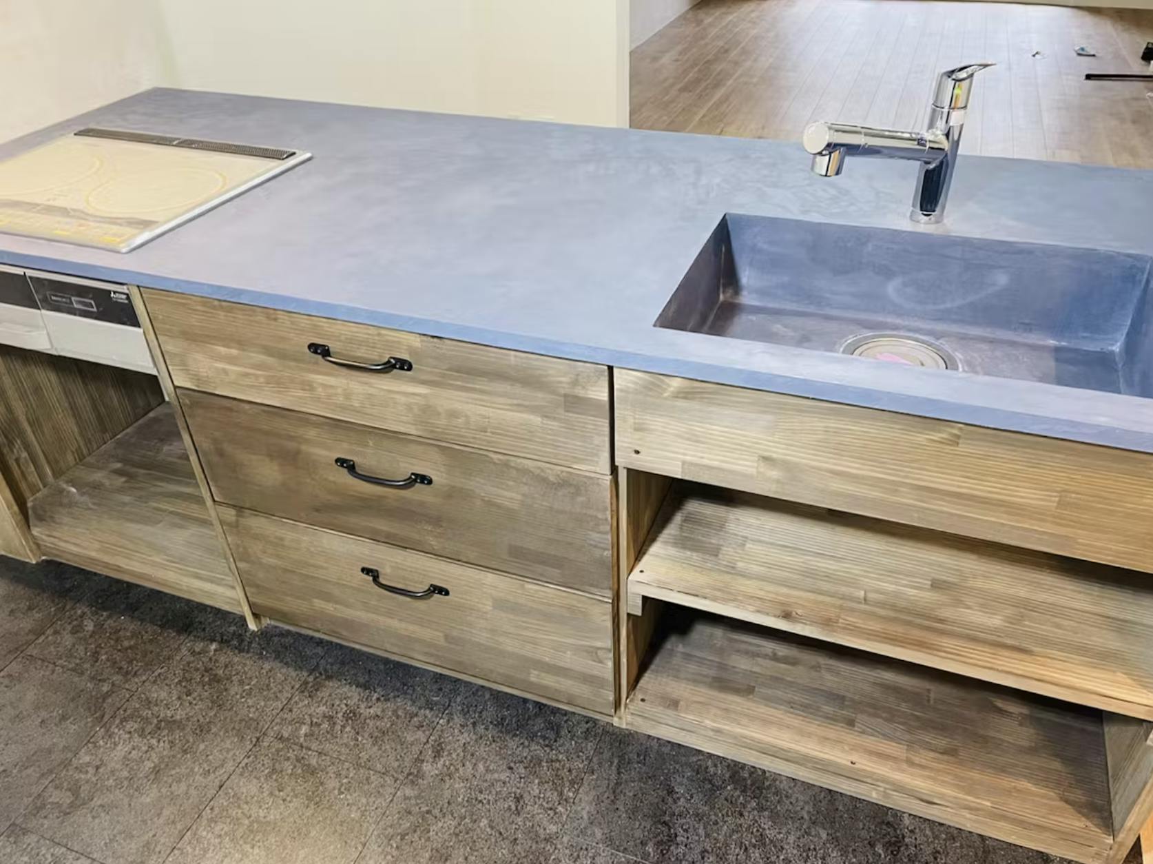 さらに、防水性と耐久性があるため、コンロやシンク周りといった水や油にさらされやすい部分にも安心して使用できるのが強みです。モールテックスの持つマットな質感が、空間に落ち着きとデザイン性を加えてくれるため、来客の目にも留まりやすくなります。