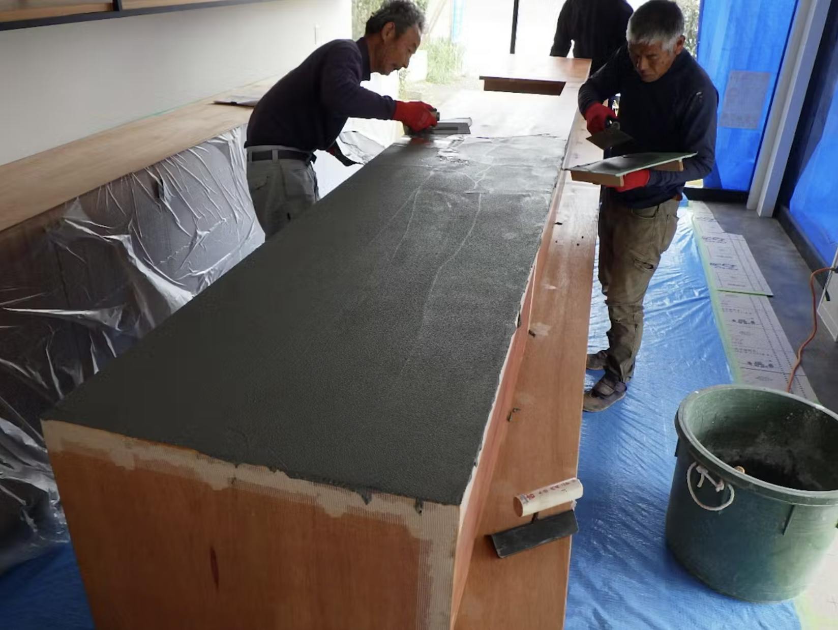 一方で、モールテックスは厚みがわずか2〜3mmでありながら、非常に高い強度と防水性を備えており、まったく異なるアプローチの素材といえます。これにより、既存の下地の上から施工することも可能で、リフォーム時にも使いやすいのが大きな特長です。
