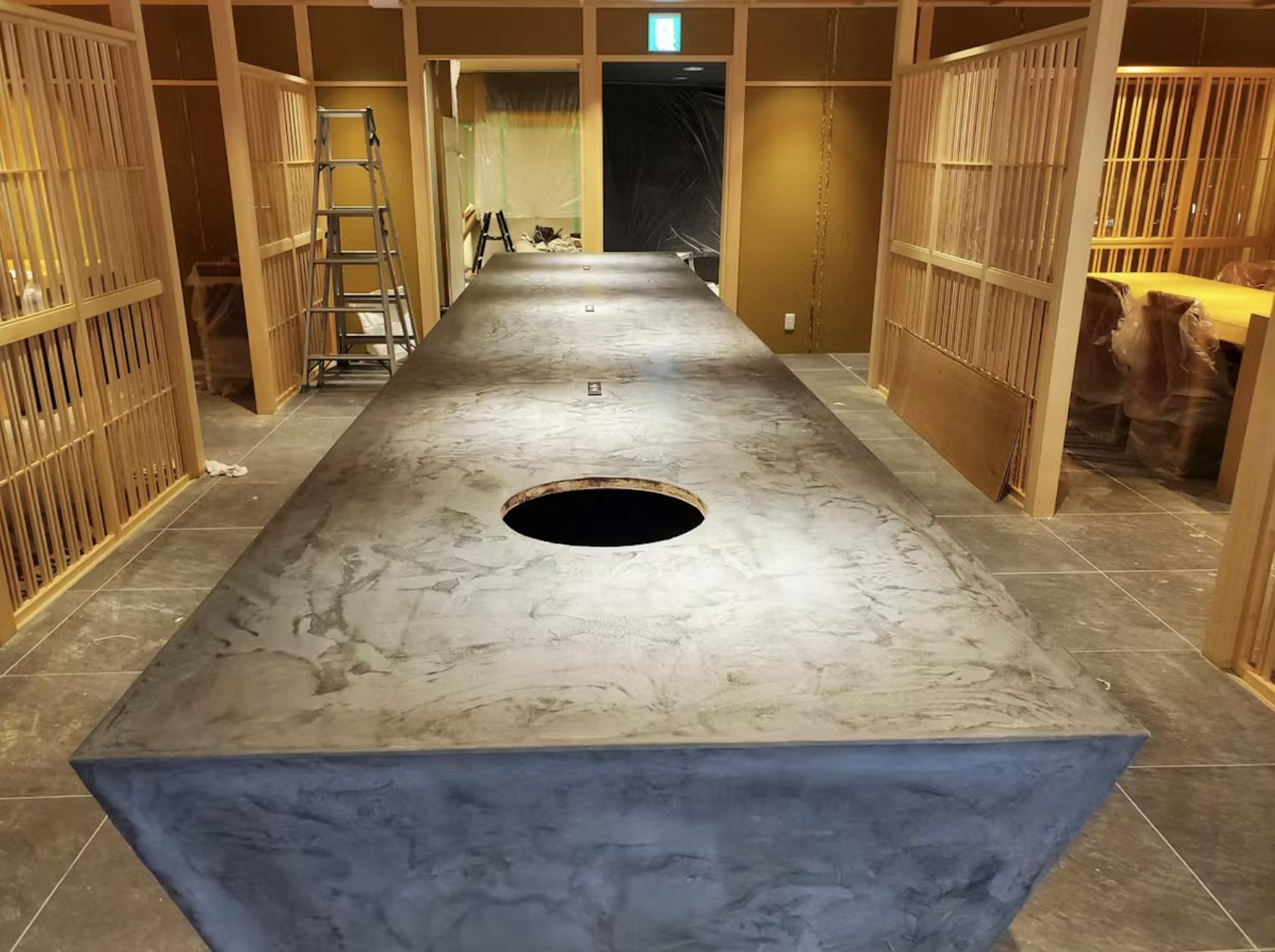 商業施設やオフィス空間においても、モールテックスは高い評価を得ています。その理由は、継ぎ目のないデザイン性と機能性を同時に実現できるからです。たとえばカフェでは、カウンター等にモールテックスを使うことで、無機質でスタイリッシュな空気感が空間全体に漂います。照明との相性も良く、塗りムラが味として活きるため、店舗に“らしさ”を加える演出にも最適です。