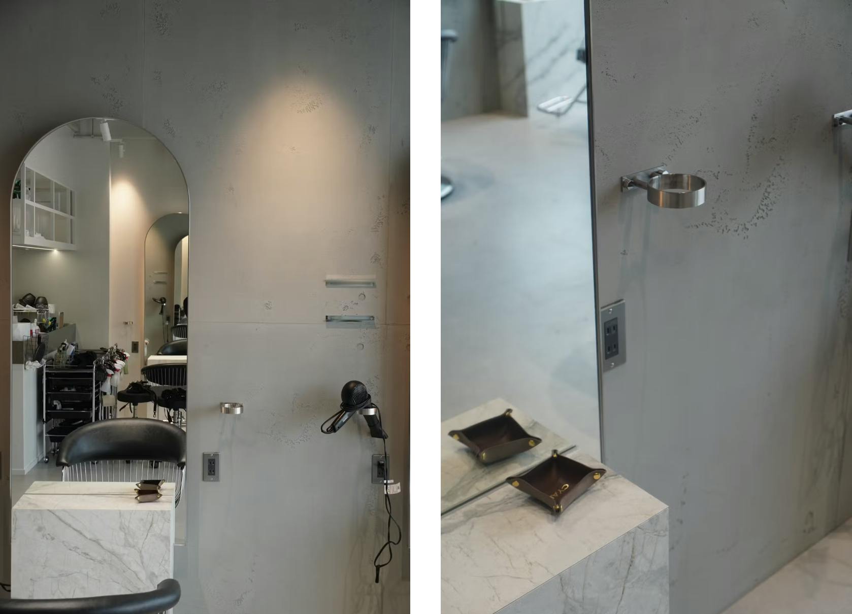 たとえば、美容室やカフェ、ギャラリーなどでよく使われるのは、「他の店と違う空気感」を出すため。手仕事でつくられるフレスカラリの壁面は、照明や什器との相性によっても印象を変え、空間全体に奥行きと深みを与えます。普通の内装材では出せない、唯一無二のスタイルなのです。