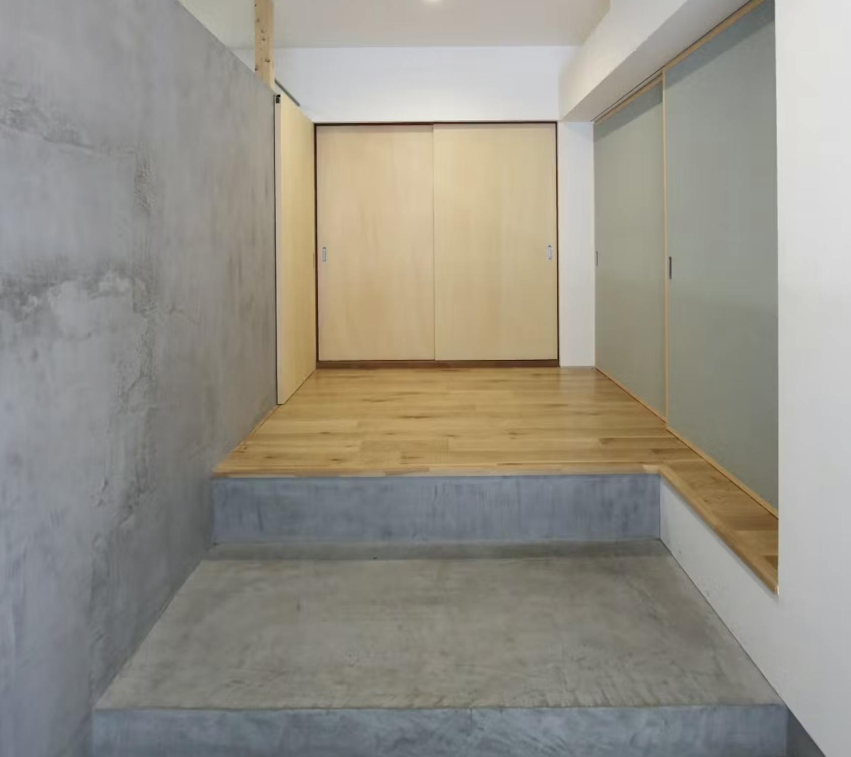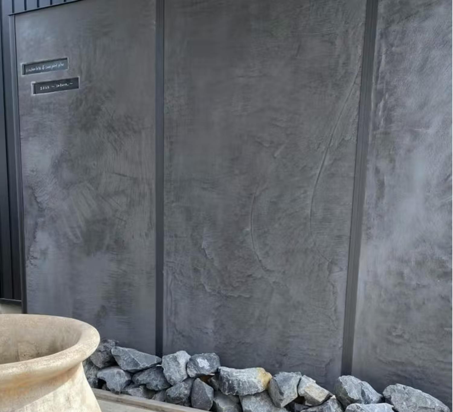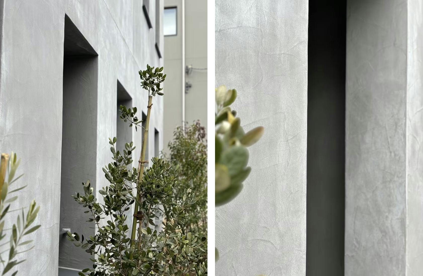 見た目はまるで打ちっ放しのコンクリートのような無機質さと重厚感がありながら、質感は滑らかで繊細。まさに“洗練された仕上がり”が可能な左官材といえます。
