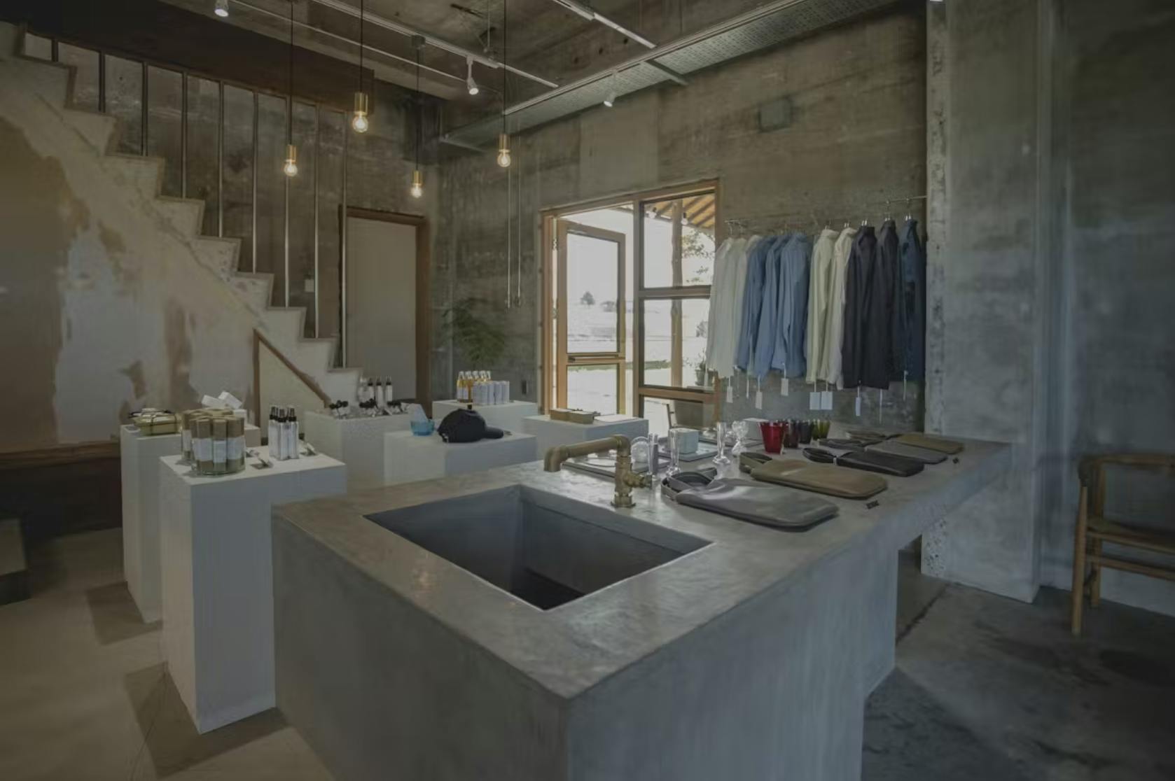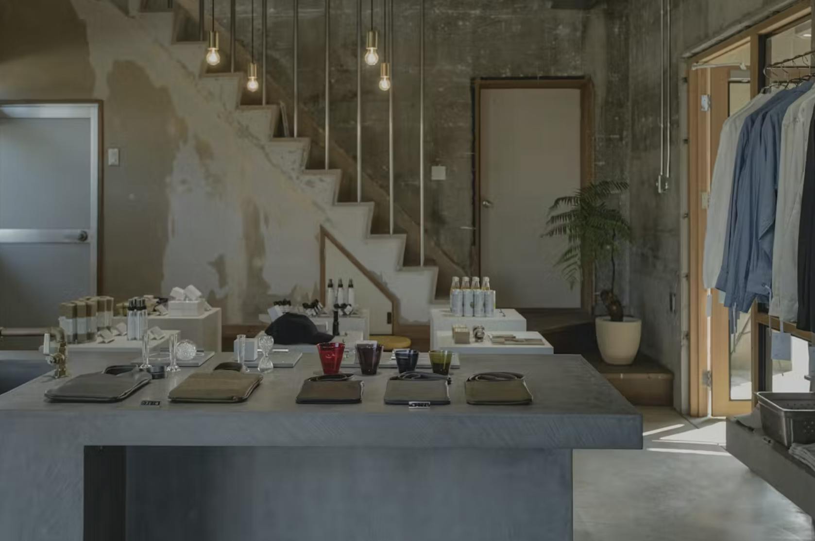 たとえば、コンクリート調の無機質な壁と、同素材で仕上げられた什器がつくり出す一体感。それは、まるで「空間そのものがコンセプトを語る」ような演出を可能にします。