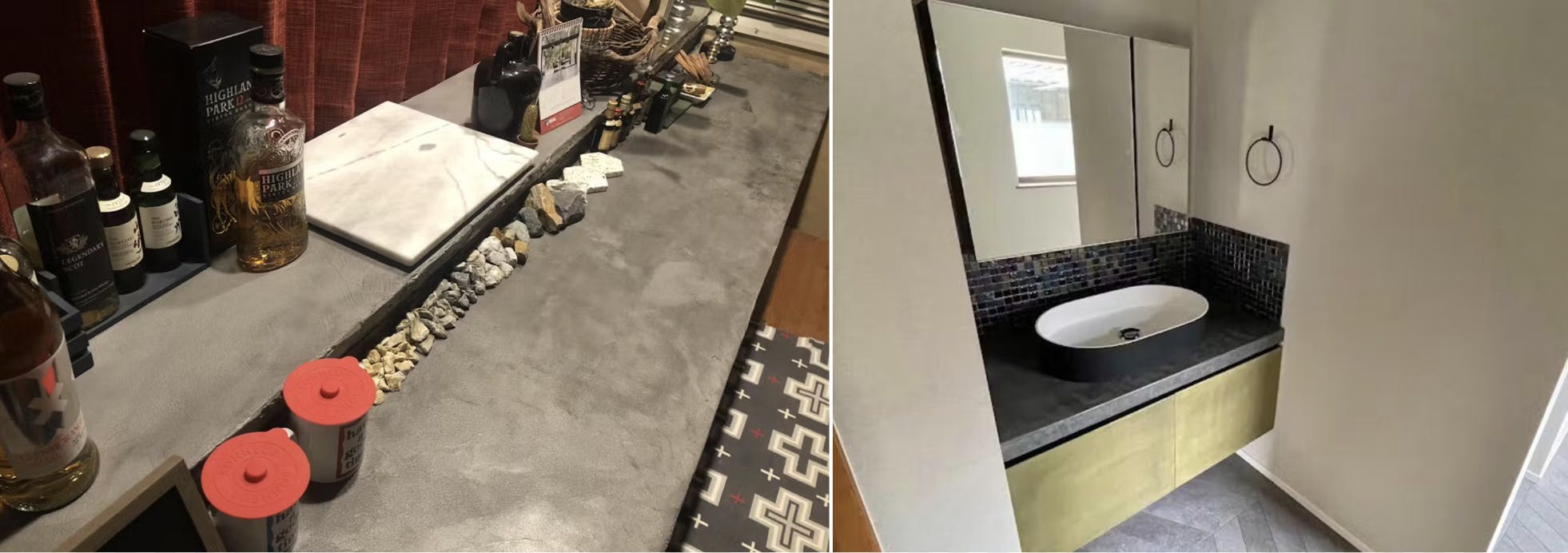 薄塗りなのに高耐久、防水性があり、床やカウンター、水回りなどあらゆる場所に施工可能。さらに、色やテクスチャーの自由度が高く、空間に深みと統一感をもたらします。