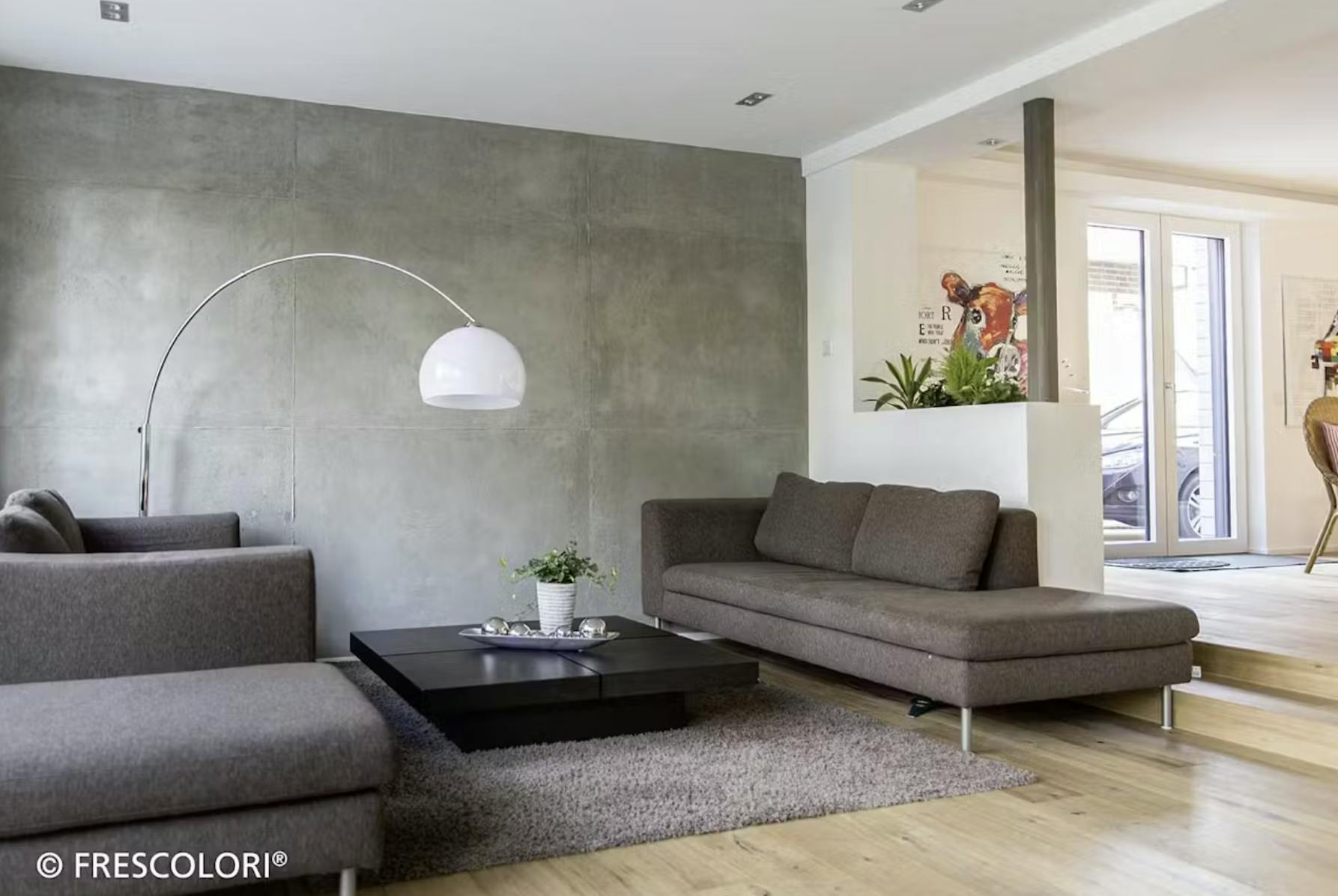 フレスカラリのフレスコトンは、ドイツ生まれの輸入左官材で、まるで本物のコンクリート打ちっ放しのような質感を再現できる材料です。その高い意匠性と施工性で、一般住宅から店舗内装まで幅広い場面で活用されています。