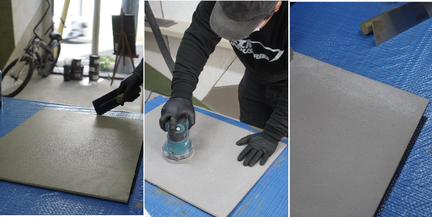 8.CM5+骨材の板を研磨し、各種トップコート塗布