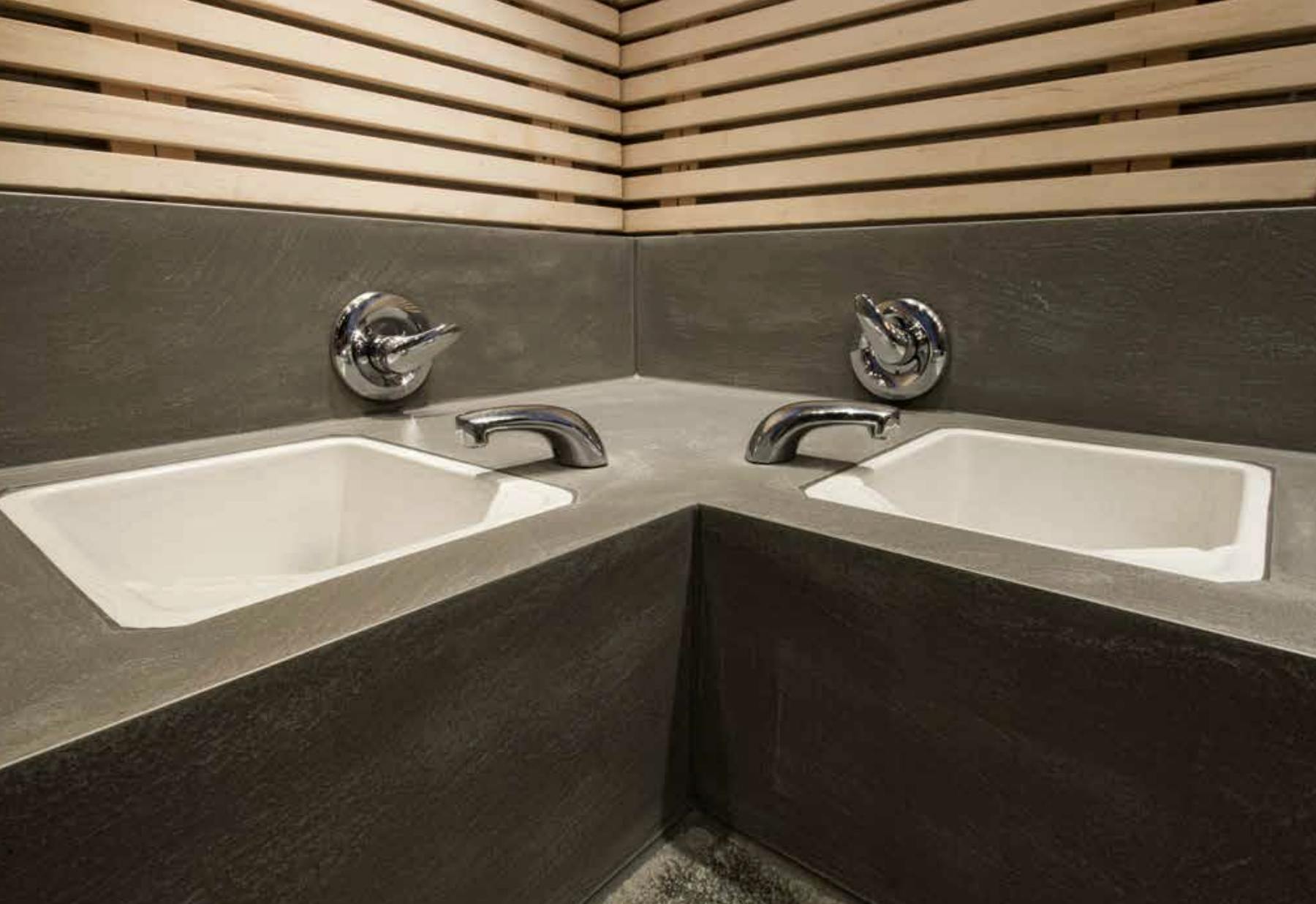 そんな中で注目されているのが、左官材でありながら完全防水対応が可能なPURAMENTE(ピュアメンテ)」。塗り仕上げによるシームレスな床・壁面を実現でき、しかも表情豊かなデザインも楽しめる、まさに水回りの新定番です。