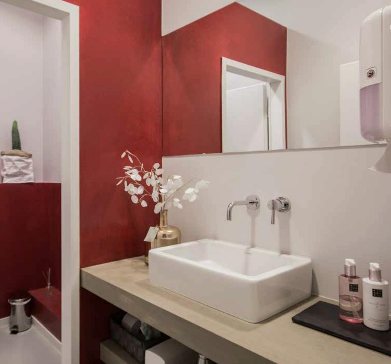 この左官材は、高い防水性と美しいデザイン性を両立した、まさに“水回りの理想”を形にした素材。
