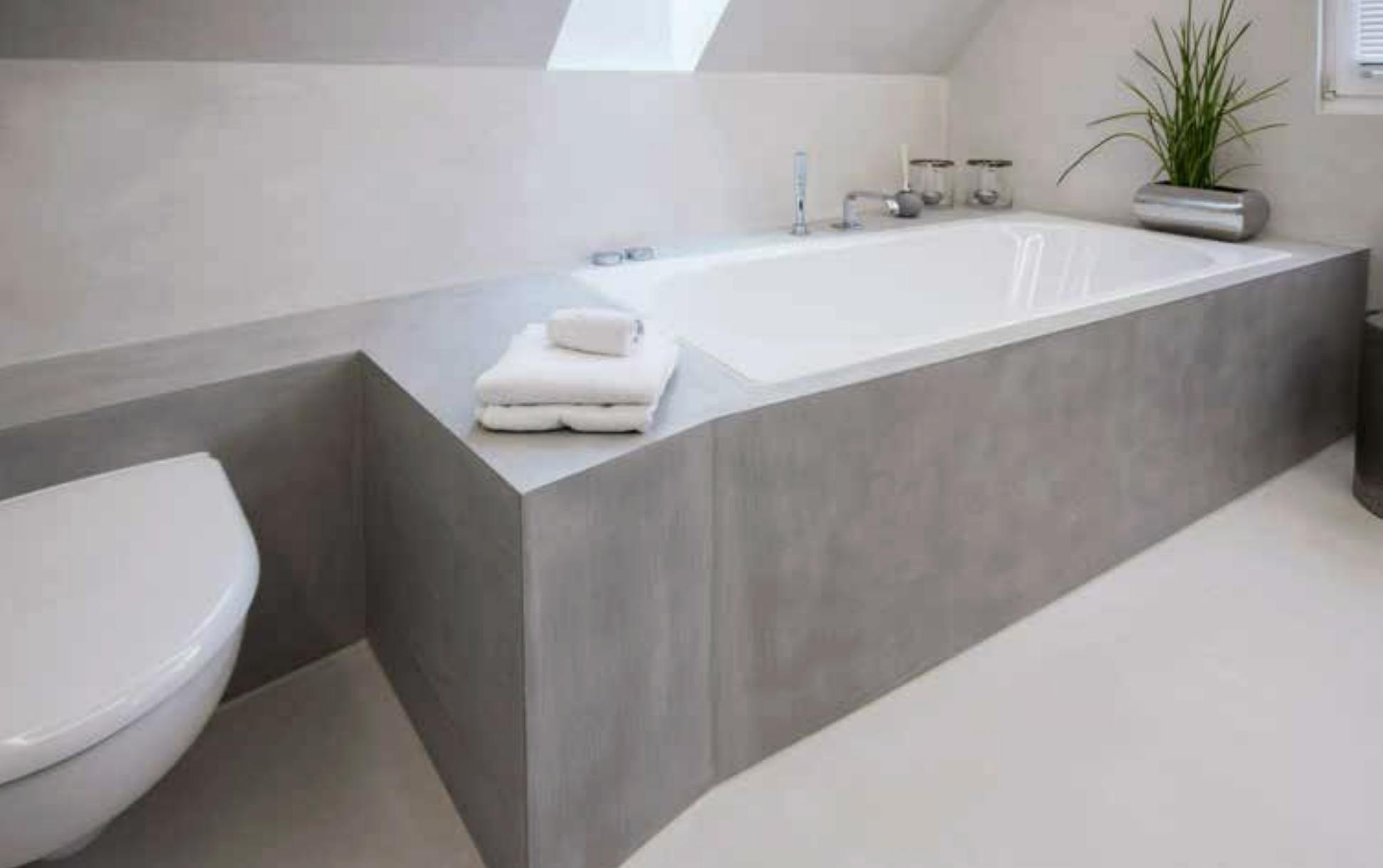 ピュアメンテは、左官材「マランツォ」の耐久性と質感をそのままに、完全防水層を追加したアップグレードモデル。コンクリート調のマットな質感を楽しみつつ、浴室や水回りなどの高湿度環境にもしっかり対応できます。