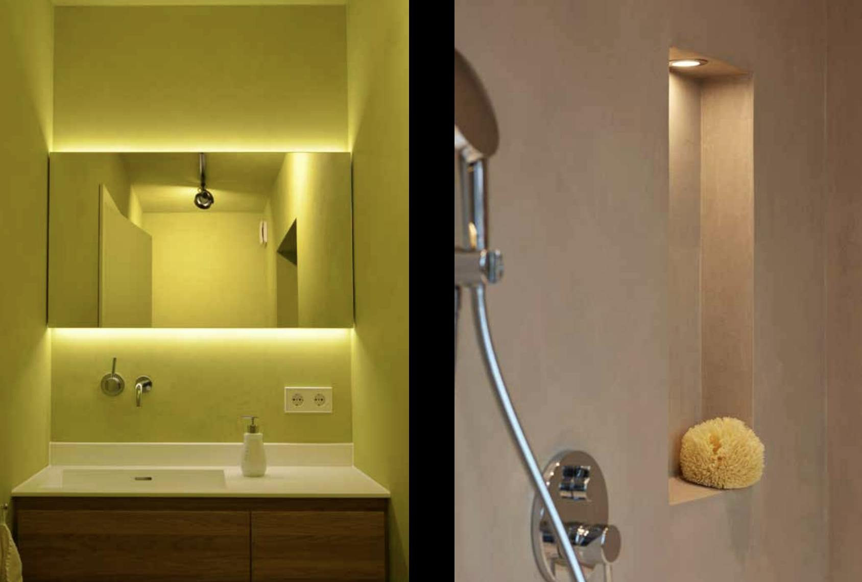浴室や洗面、トイレといった空間においても、壁や床の継ぎ目をなくし、清掃性と一体感を両立。しかも職人の手仕事による仕上がりは、どの空間にも自然に溶け込むやさしい存在感を放ちます。