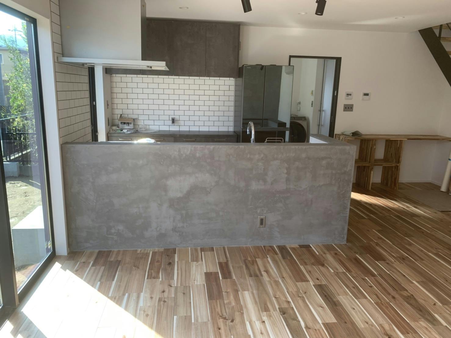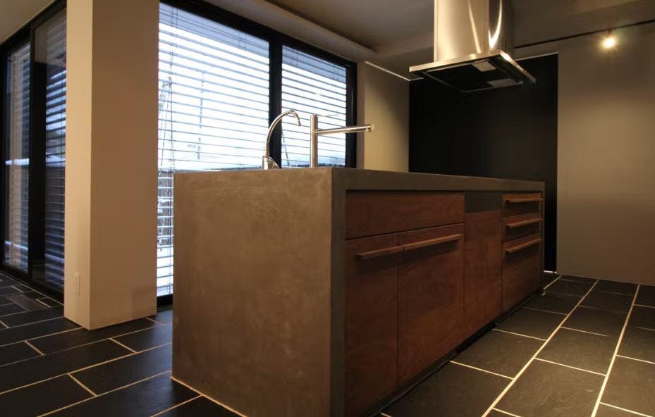 モールテックスを使ってキッチンがコンクリート調になり、他にはないキッチンができます。