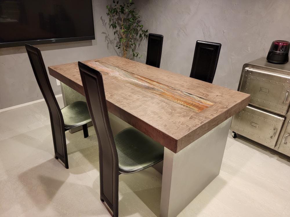 モールテックスが気に入った方は、ダイニングテーブル以外にも、スツールやTV台、床や壁に施工範囲を広げる方も多いです。モールテックスならではの見た目と質感、機能性を十分に活かしながら、日々の生活が楽しく快適になれば嬉しいです。