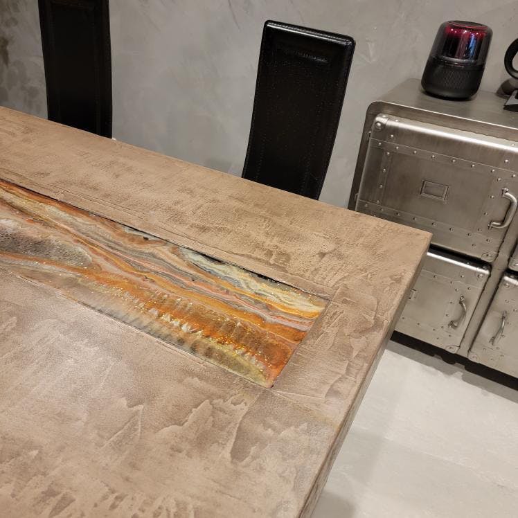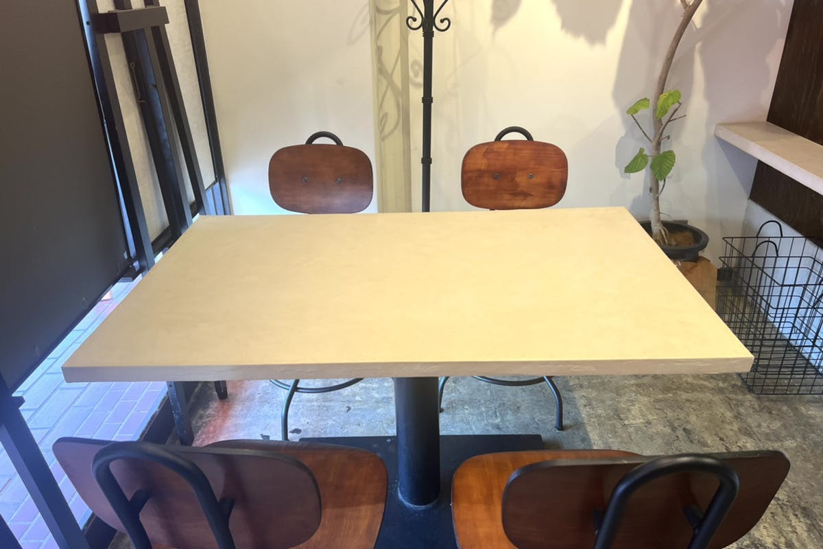 ダイニングテーブルテーブルにモールテックスを使う際は、天板に塗ることが多いです。もちろんテーブルの脚や側面に塗っても構いませんし、全面施工することでコンクリート調のテーブルをつくることも可能です。