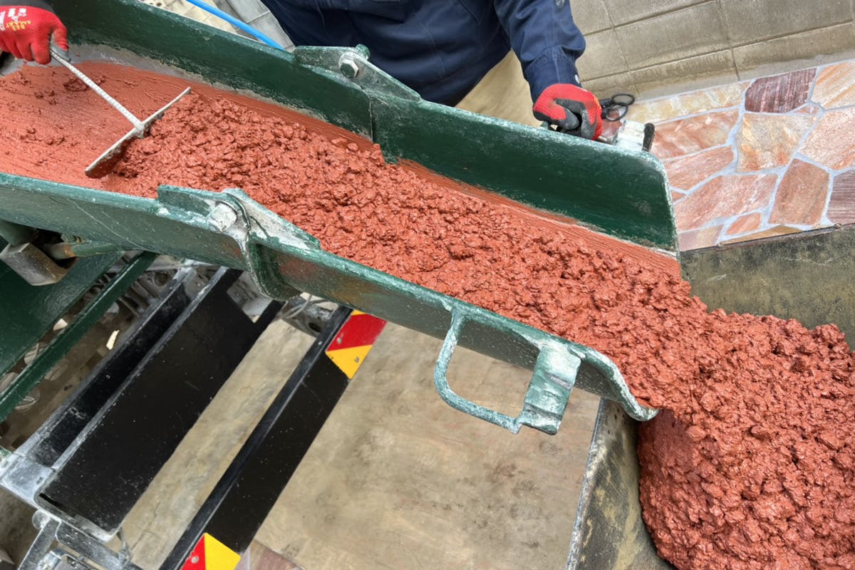 バイフェロックスはプラントで顔料を混ぜて持っていく方法と、現場で投入する方法があります。