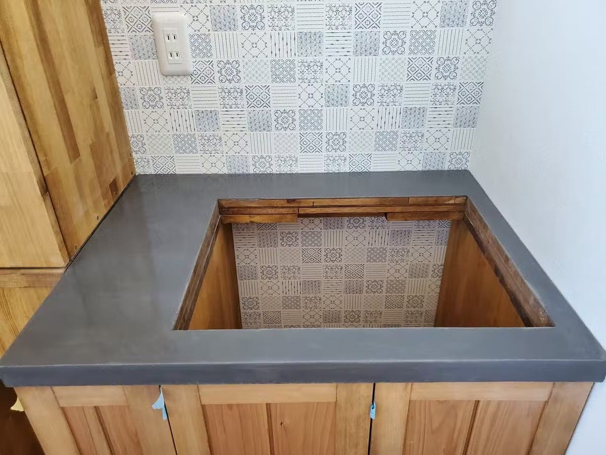 たとえば、洗面台のカウンターを「モールテックス」にした場合、カウンターが歪んだり、硬い物を落としたりしてもヒビや割れが入りにくいでしょう。収納キャビネットの扉に塗布した場合にも、扉の強い開け閉めに対する高い耐久性が期待できます。