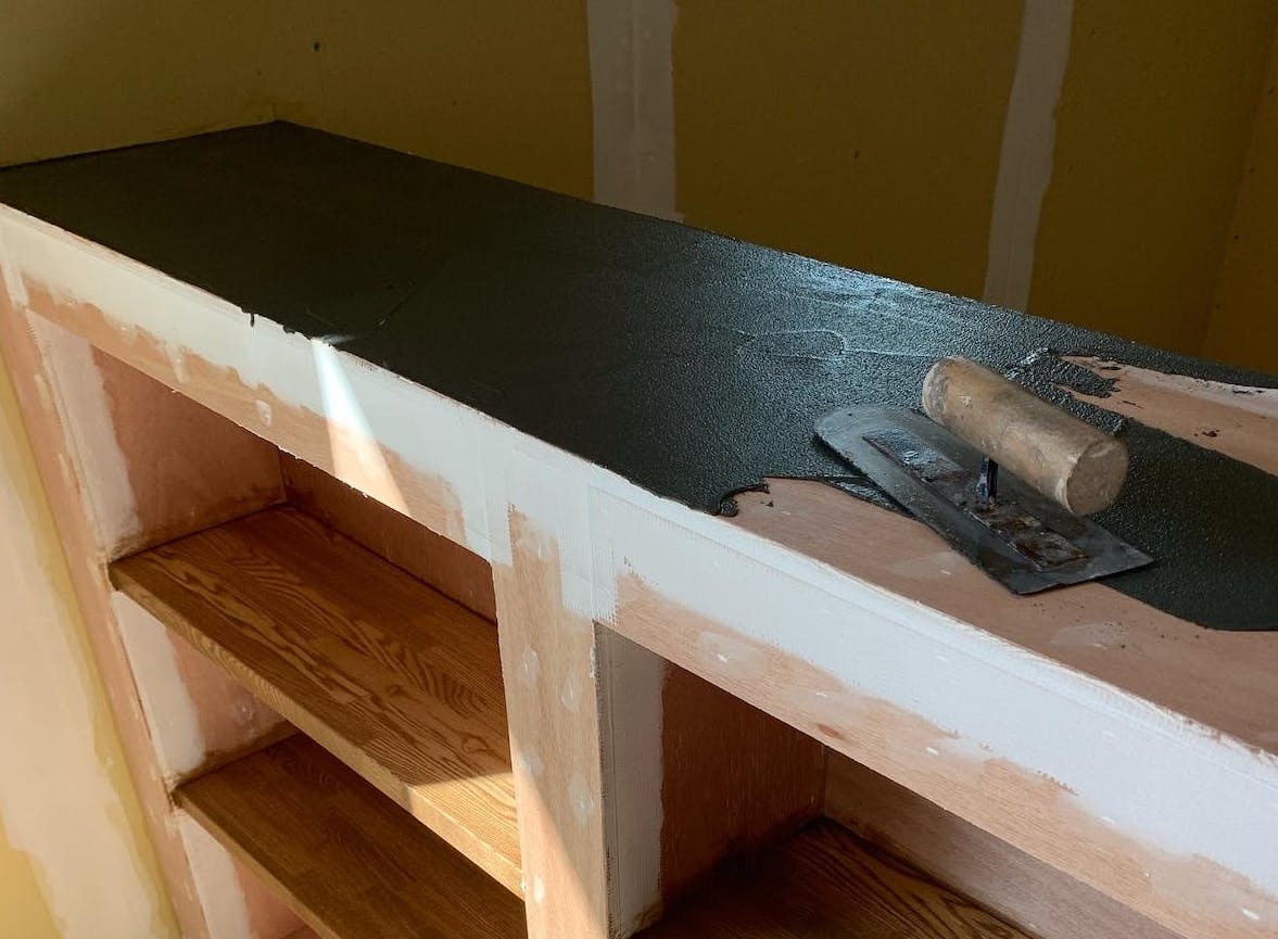 そのため厚く塗る必要がなく、既存のカウンターや収納キャビネットの上にも塗布できるので、ベランダや階段、ドアなどに活用することが可能です。また、「モールテックス」は柔軟性が高く、乾いた後でも少し曲げた程度ではヒビが入りません。